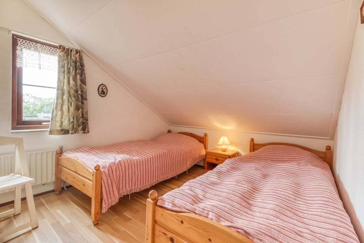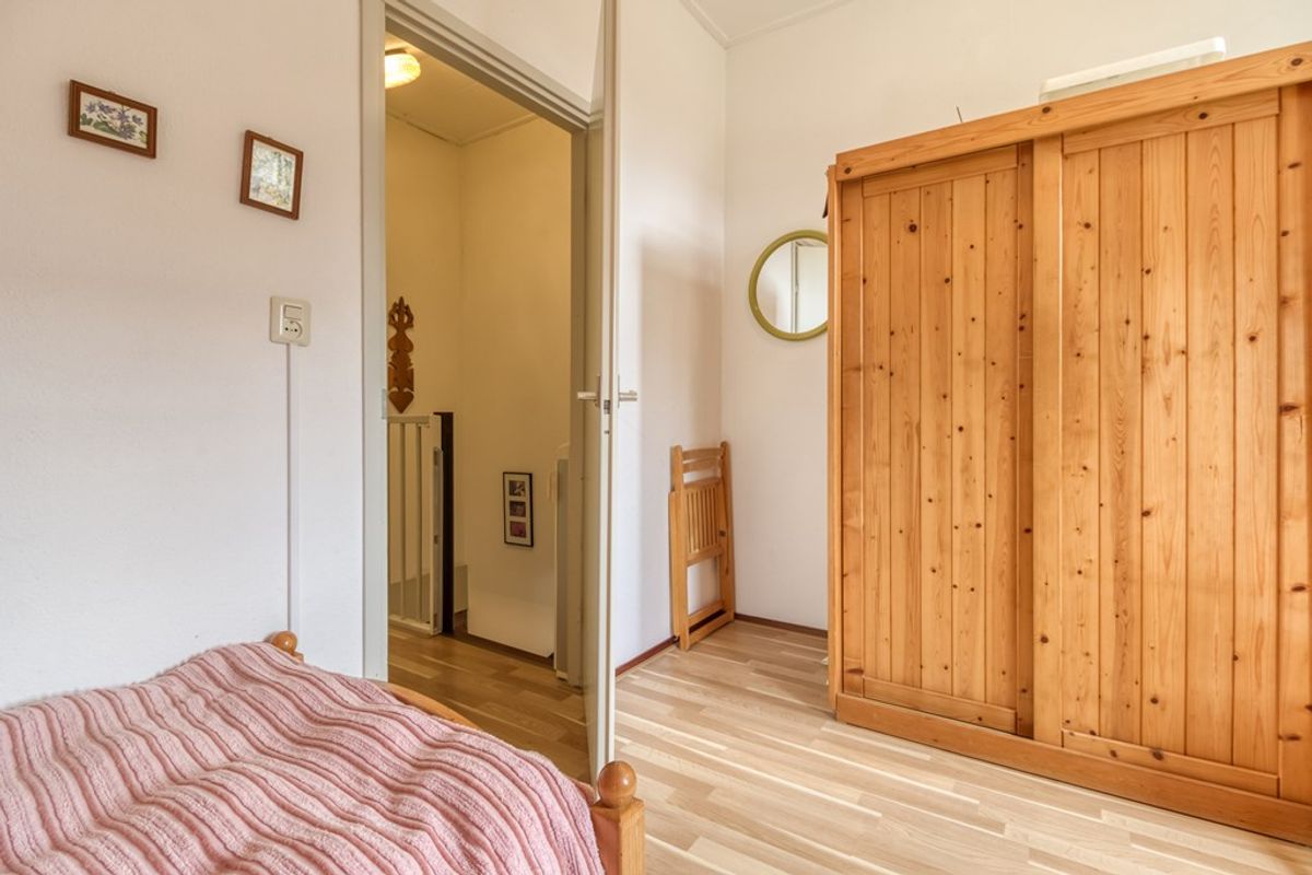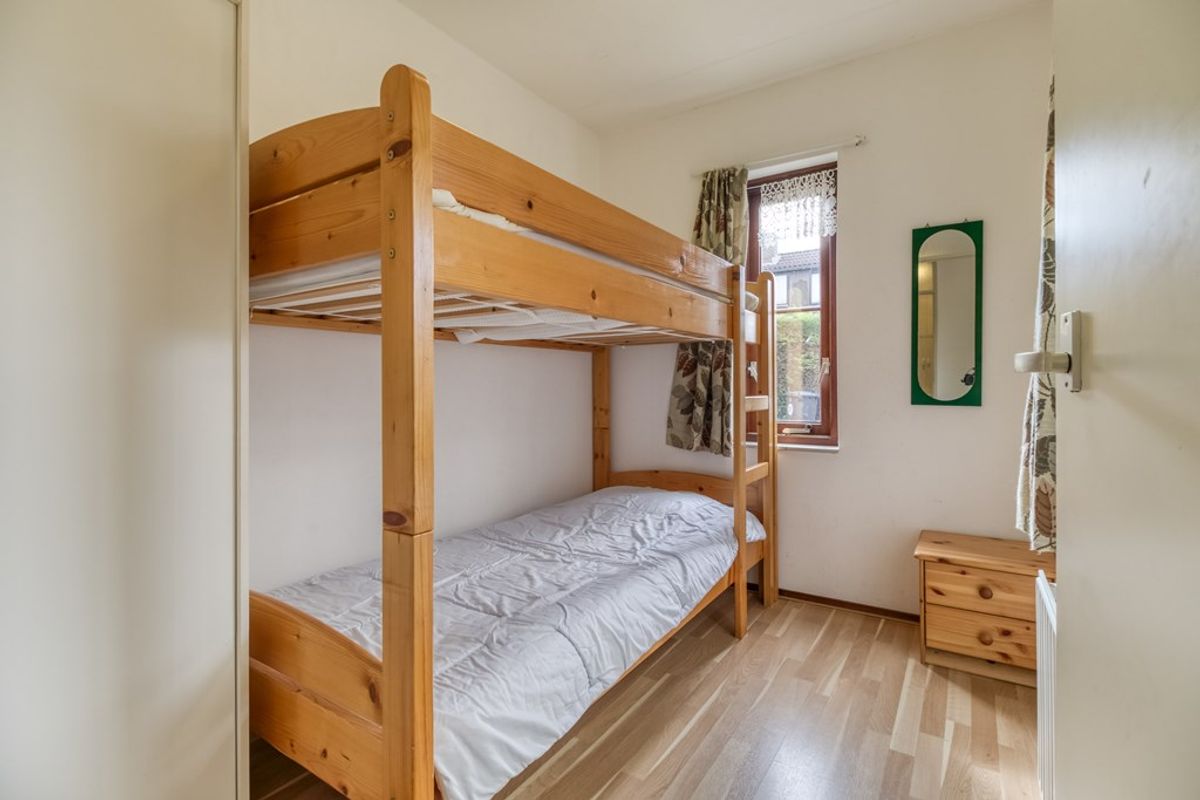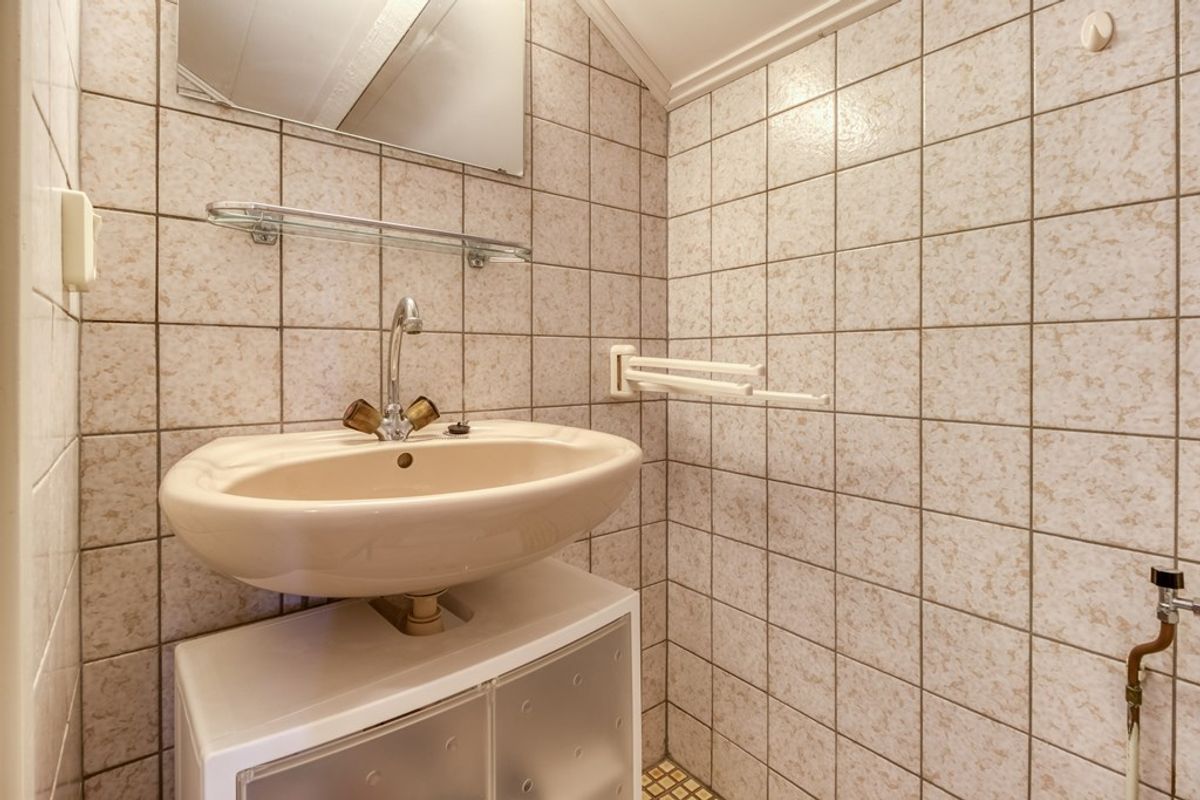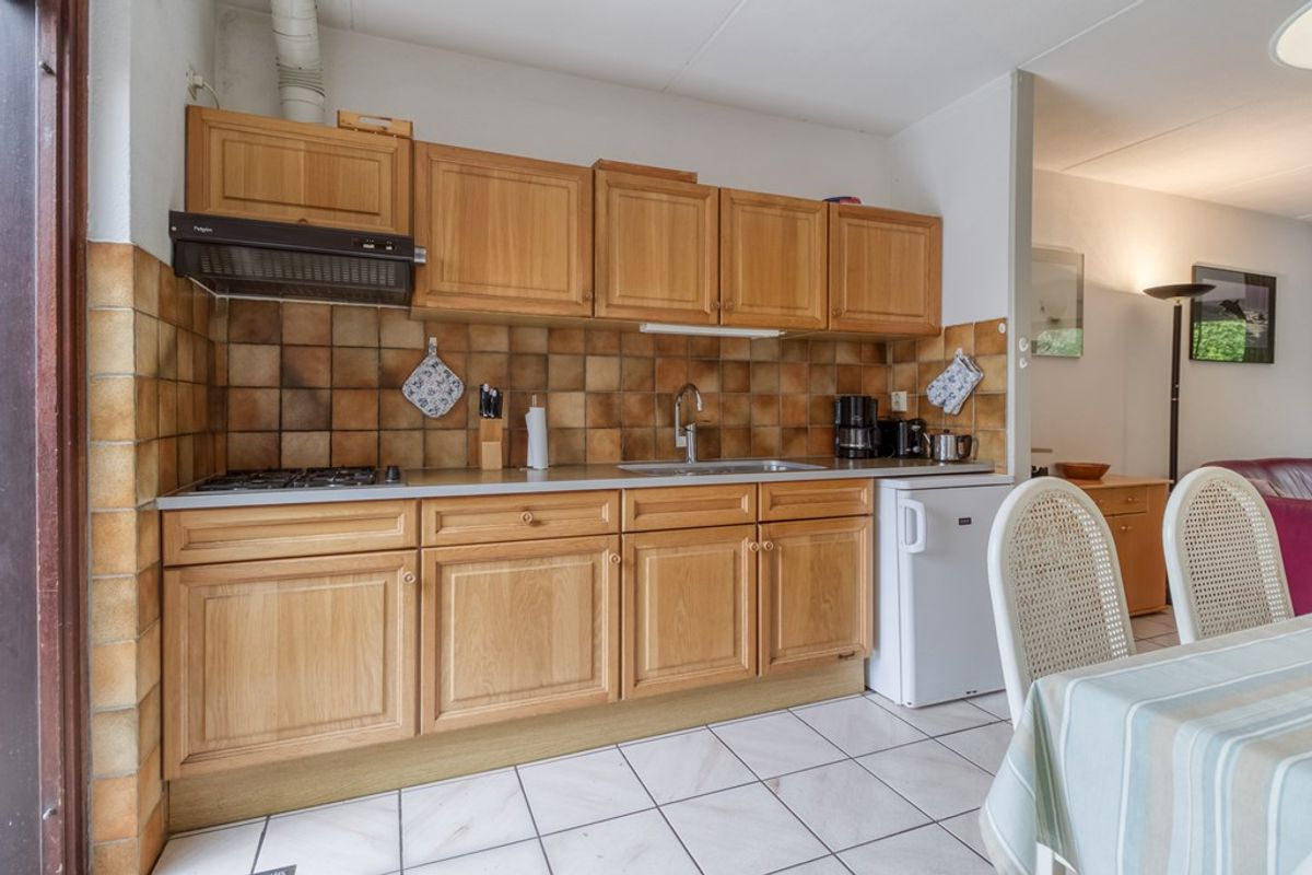 Via de entree komt u in de hal met meterkast, wasmachine en ruimte voor de garderobe. Vanuit de hal is er toegang tot de badkamer, de slaapkamer op de begane grond en de woonkamer. De badkamer is voorzien van douche, bad, wastafel en toilet. In de woonkamer is er een zithoek en eethoek met open keuken. De keuken en woonkamer hebben beide een schuifpui naar de tuin. De keuken is voorzien van 4-pits gaskookplaat, afzuigkap, dubbele spoelbak en koelkast met vriesvak.