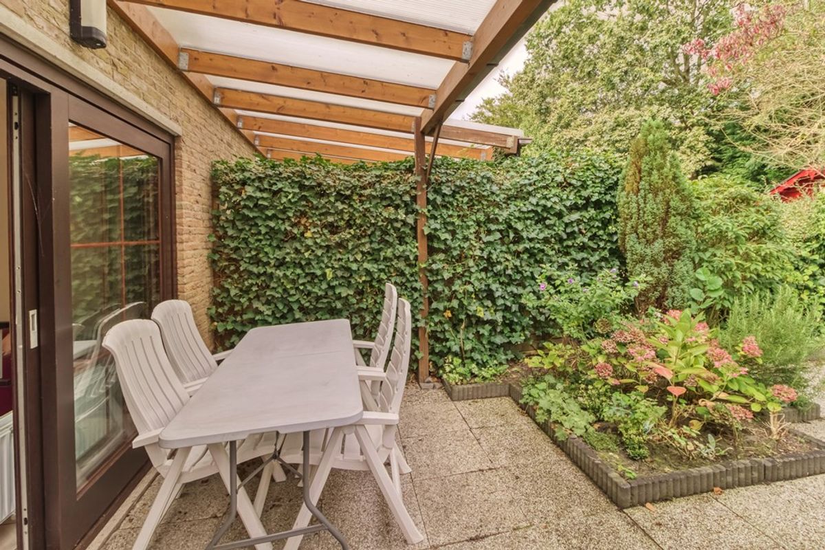 Achtertuin op het noorden met gedeeltelijk overdekt terras en tuinhuis ideaal voor het opbergen van strandspullen en (tuin)gereedschap. De tuin is voorzien en omringd door veel groen en bomen waardoor er volop privacy is. De voortuin is gelegen op het zuiden en heeft eveneens een overdekt terras waar het aangenaam zitten is in het zonnetje. Op eigen terrein is er parkeerplaats voor 2 auto’s.