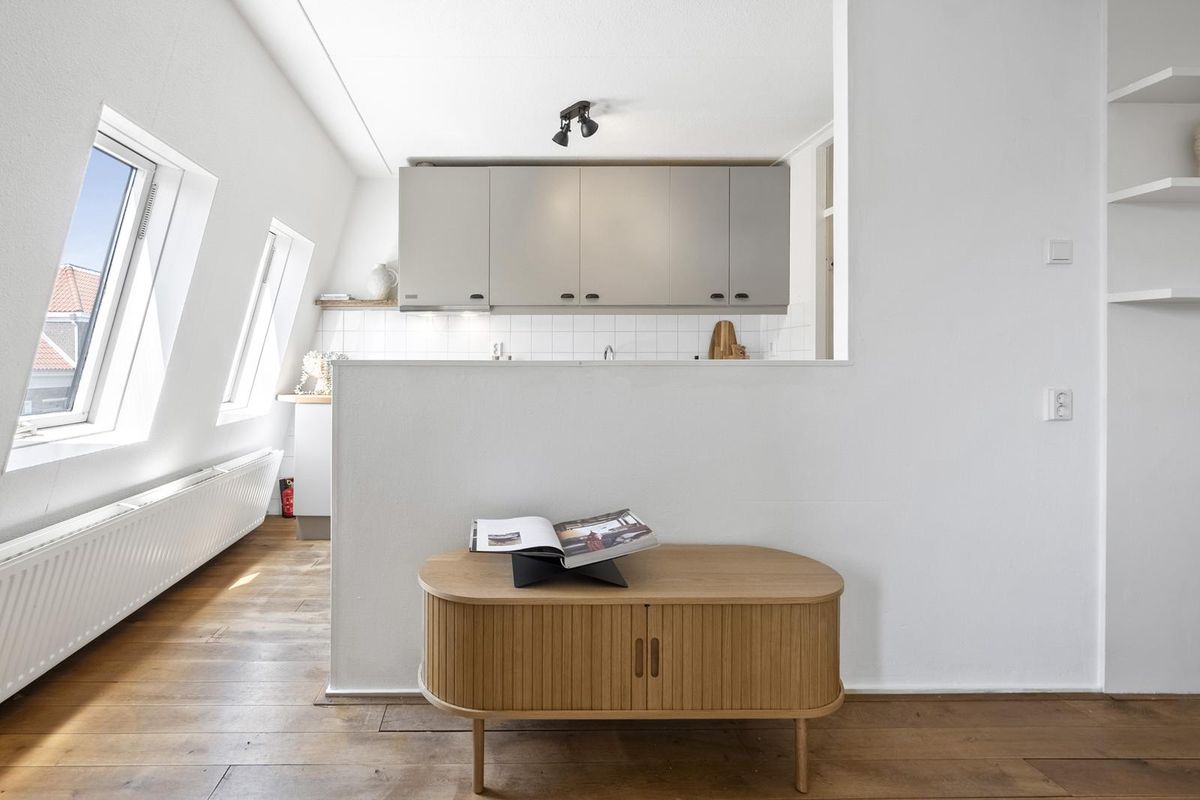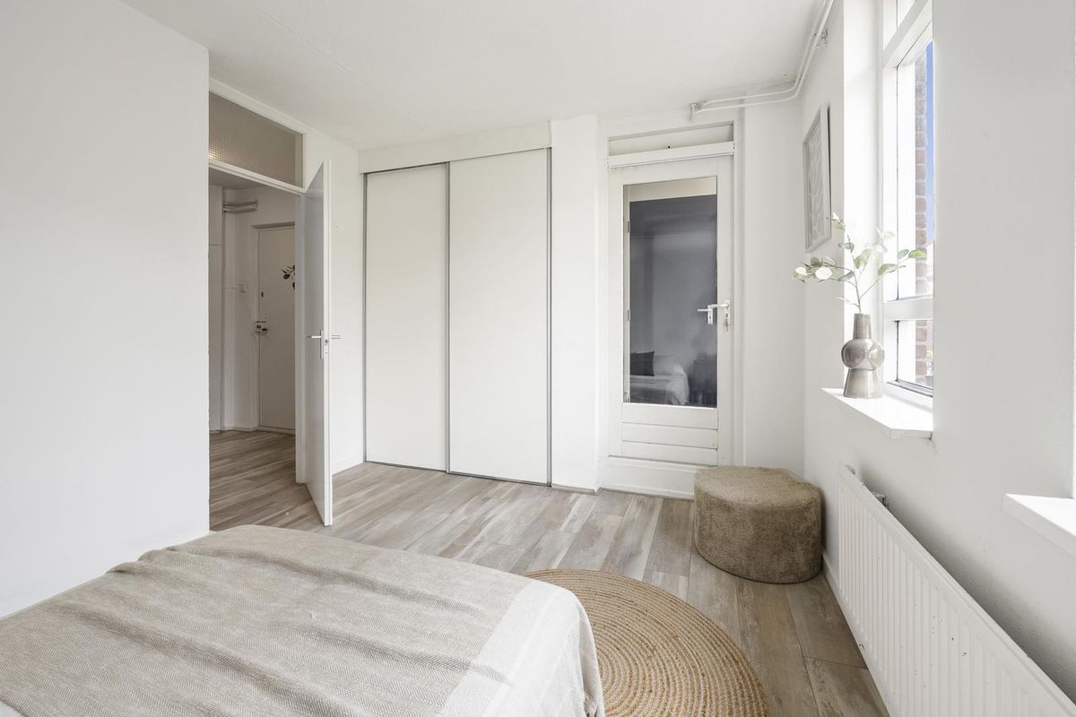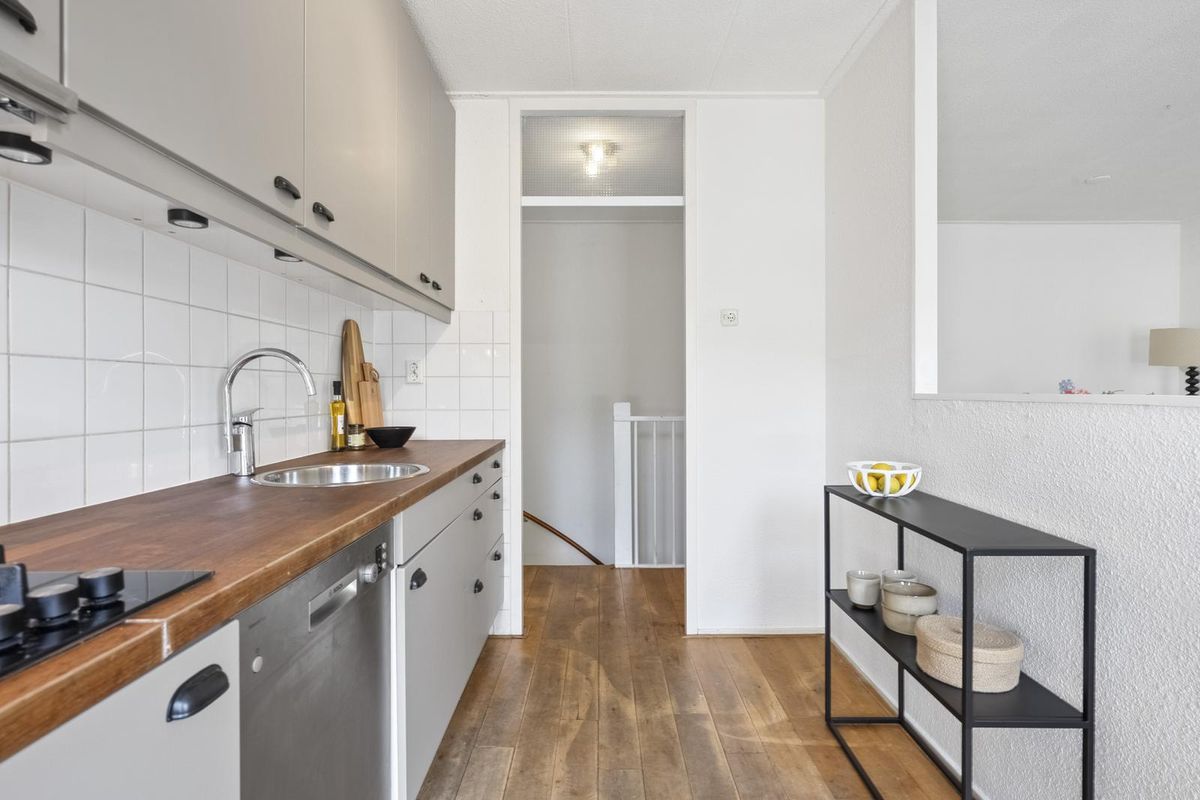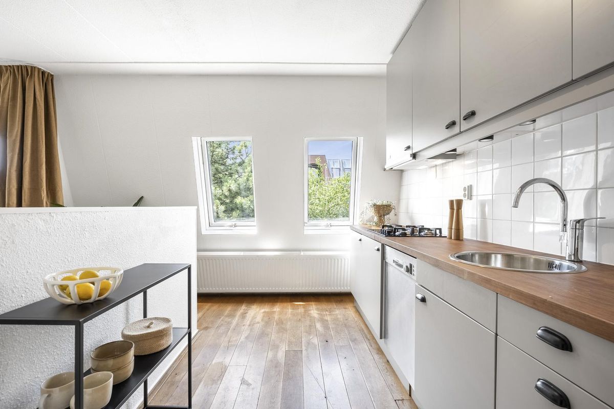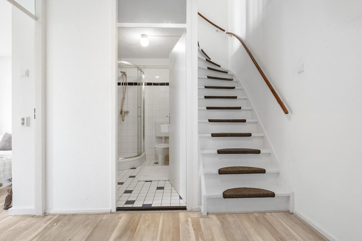 De maisonnette is slim ingedeeld en verrassend comfortabel. Op de begane grond vind je een rustige slaapkamer met plek voor een tweepersoonsbed en een nette badkamer met douche, toilet en wastafel. Compact, maar compleet. Via de trap kom je in de lichte woonruimte met open keuken (2022). Deze verdieping voelt prettig en ruim aan door de grote ramen en directe toegang tot het balkon (westen) – jouw eigen plekje om buiten te zitten. En extra handig: je hebt een eigen berging op de begane grond, ideaal voor je fiets of opslag.