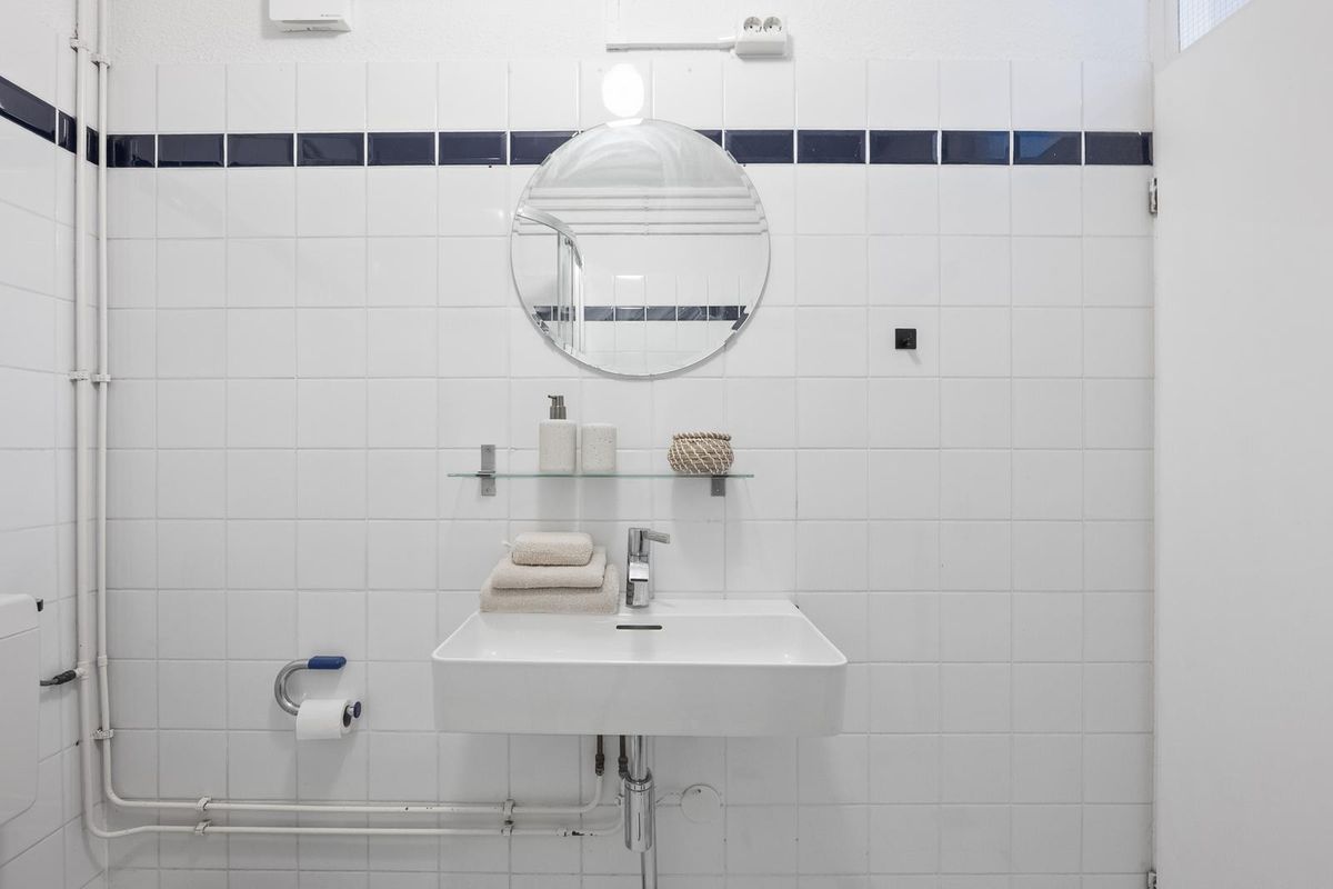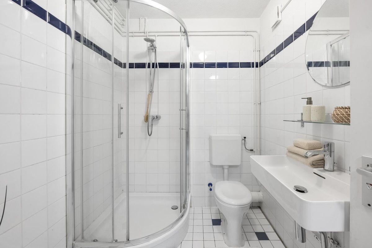 This well-designed maisonette offers surprising comfort in a compact space. On the ground floor, you'll find a quiet bedroom with space for a double bed and a neat bathroom with a shower, toilet, and sink – small, but complete.