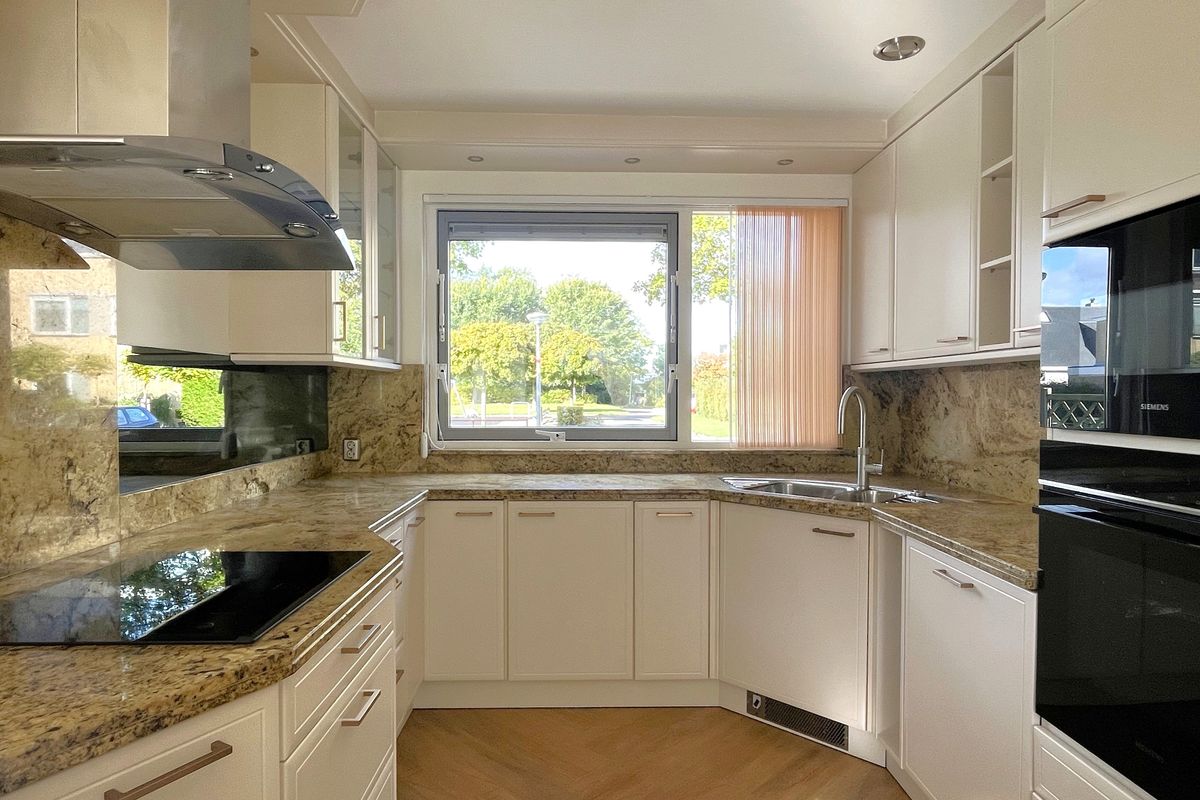 De open luxe keuken is voorzien van alle apparatuur voor dagelijks comfort, o.a.: een mooi natuurstenen werkblad rondom, een fraaie inductie kookplaat, multifunctionele oven, combi microwave, vaatwasser, koelkast vries combinatie (no frost) en combi-Quooker.