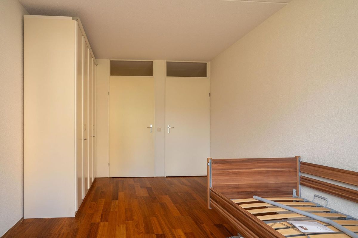 De slaapkamer is eveneens bereikbaar via de hal en biedt direct toegang tot de badkamer.