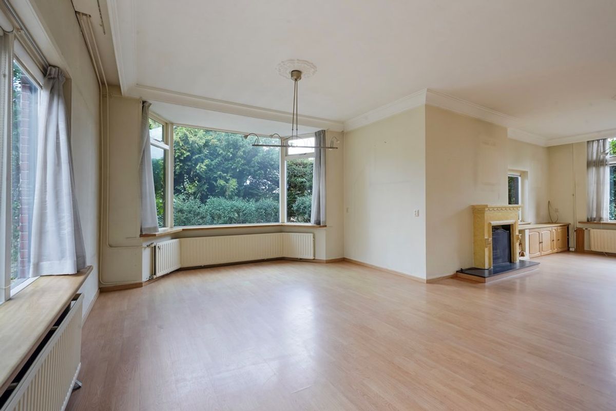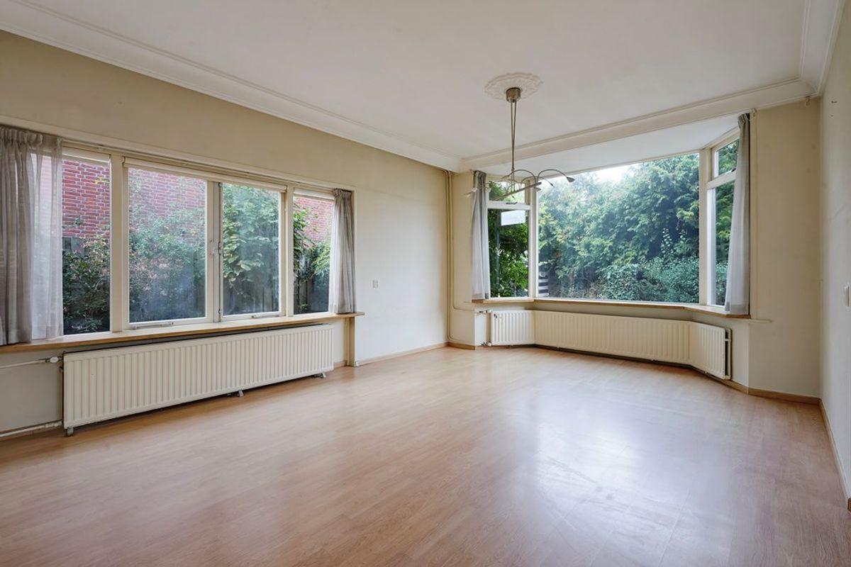 • Ruime, lichte woonkamer met erker en uitzicht op de singel