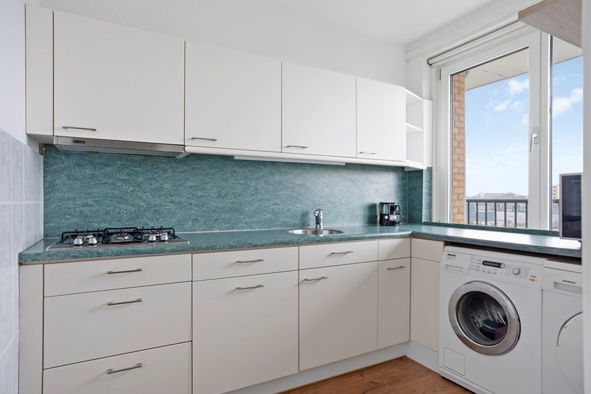 Toegang via afgesloten entree met toegang tot de bergingen en voorzien van brievenbussen en videofoon. Via trap naar de eerste verdieping alwaar de lift en trap toegang bieden tot de zevende verdieping. Het appartement met het spectaculairste uitzicht van het gebouw bevindt zich aan het einde van de galerij waar je ook heerlijk in de ochtend met een kopje koffie of in de avond met een wijntje op een bankje op de galerij kunt genieten van het groene uitzicht. De hal biedt toegang tot alle vertrekken en is voorzien van een meterkast en ruime voorraadkast. De keuken aan de voorzijde is in een L opstelling waardoor er de beschikking is tot veel werkblad. Daarnaast is het voorzien van een 4-pits gaskookplaat en afzuigkap en mogelijkheid voor het plaatsen van een wasmachine en droger of vaatwasser.