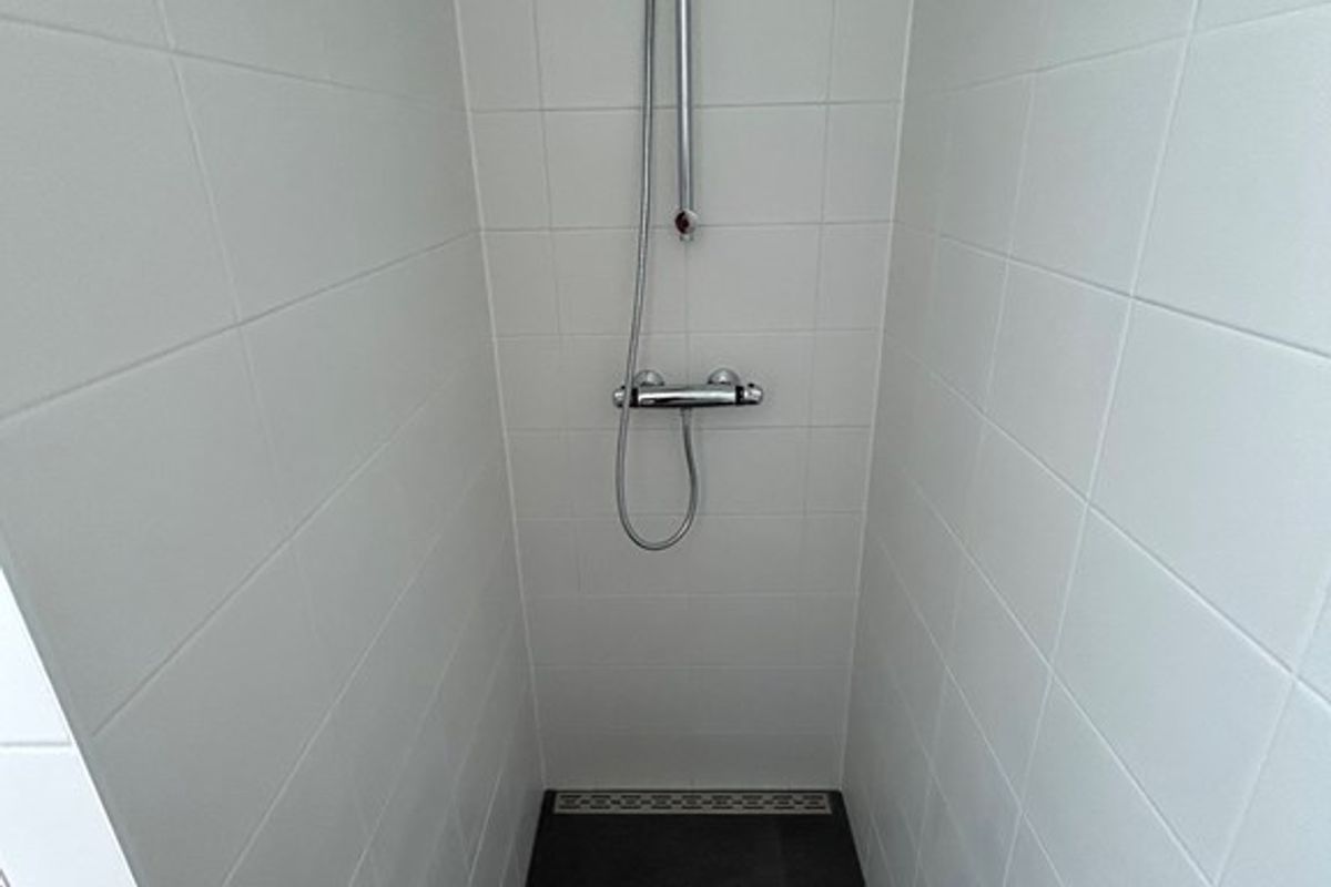 Toiletruimte 1,00 x 0,85 met plavuizenvloer en duoblok.