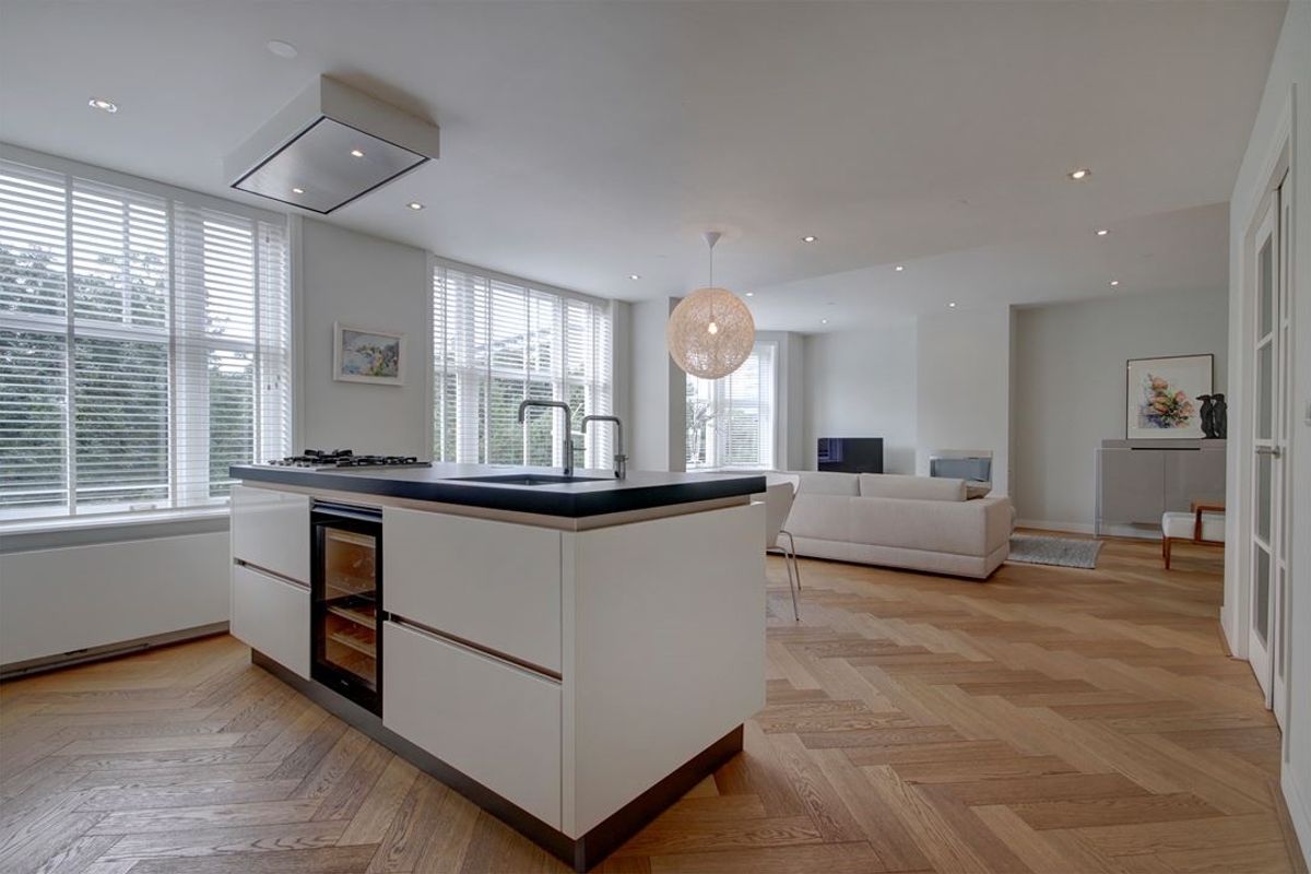 Via het gemeenschappelijke trappenhuis bereikt u de entree per trap of lift van het appartement op de tweede verdieping. Aan de voorzijde bevindt zich de lichte woonkamer met open keuken. De moderne keuken is uitgerust met hoogwaardige inbouwapparatuur, waaronder een ijskast, gaskookplaat, afwasmachine, combimagnetron en oven met stoomfunctie.