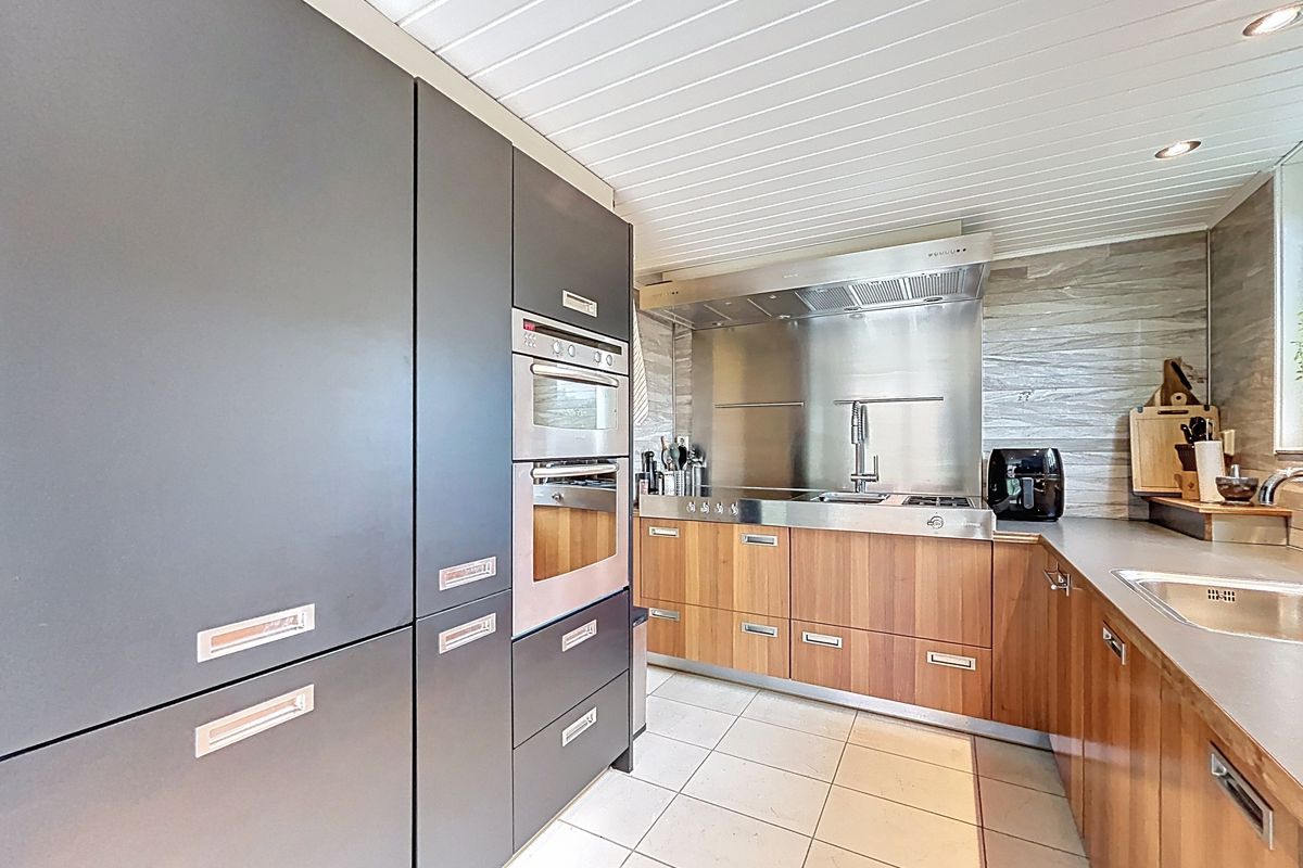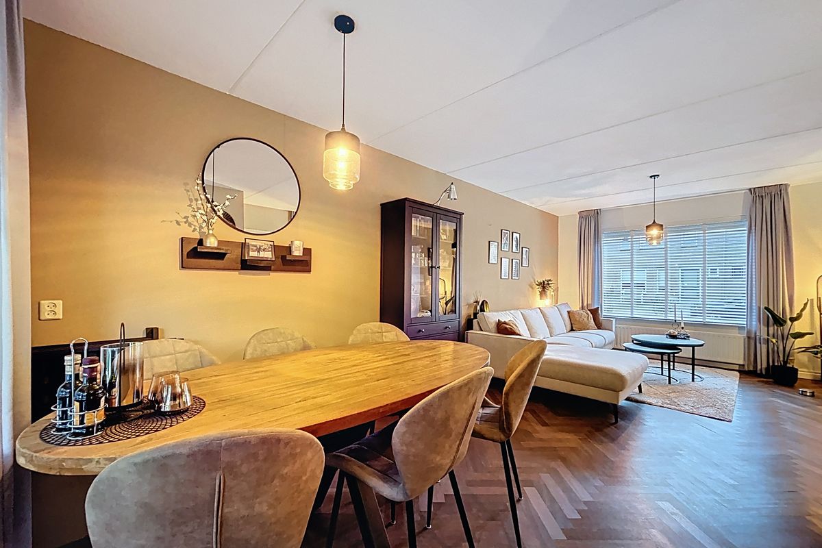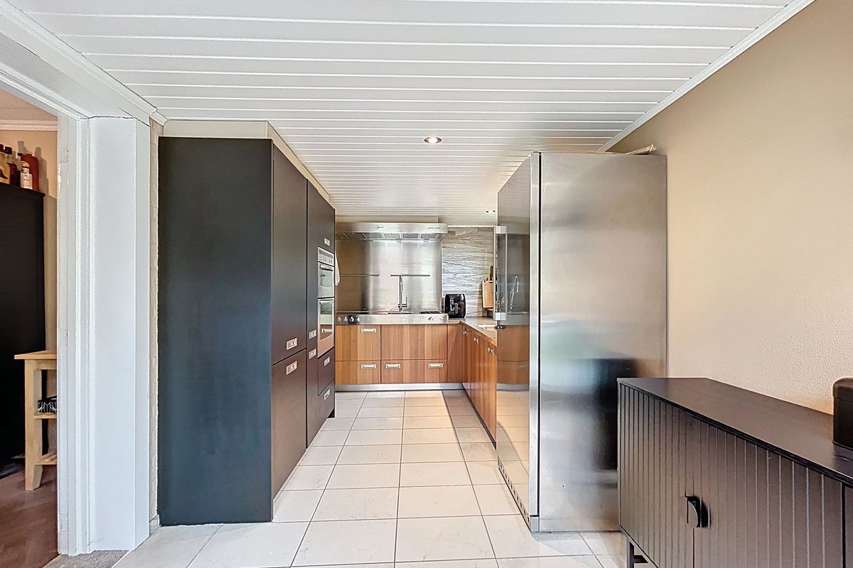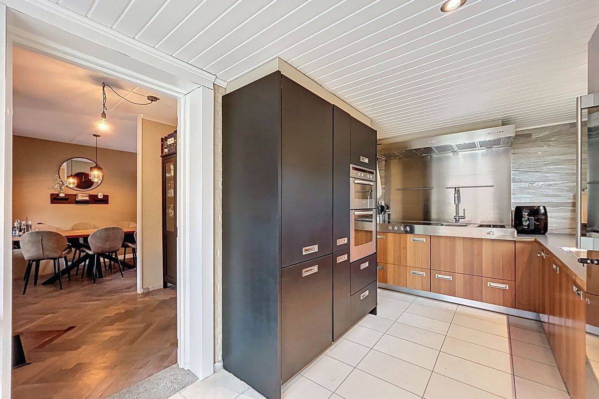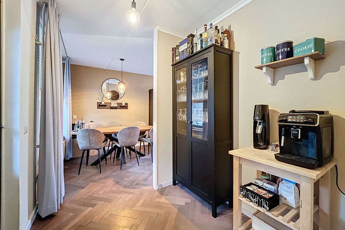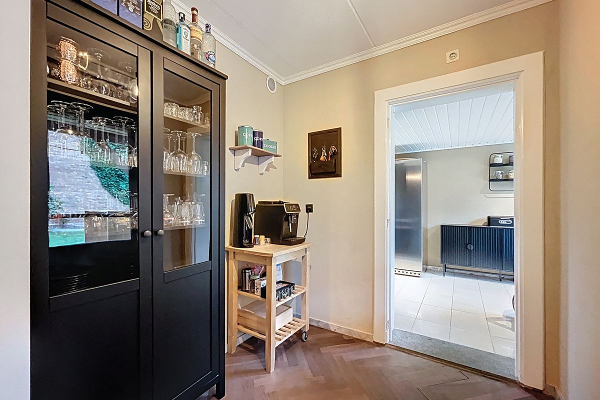 Parkeer de auto’s op de brede oprit bij de woning wanneer je thuis komt na een lange dag werken. We betreden de hal van de woning middels de voordeur. De hal biedt plaats voor het (in 2024) vernieuwde toilet en de meterkast. Vervolgens lopen we verder de woonkamer binnen. Hier valt direct de luxe afwerking op met de visgraad parketvloer en de fraaie strakke muren. De woonkamer van circa 30 m² heeft voldoende ruimte voor een gezellige zithoek aan de voorzijde en een lange eettafel aan de achterzijde. Wat heel handig is, is dat de keuken verplaatst is naar de aanbouw, waardoor je dus ook een leuke hoek hebt om te gebruiken voor kastruimte of als studeerhoek. Langs hier wordt tevens de achtertuin betreden. In de aanbouw is dus de praktische keuken te vinden. Deze is voorzien van alle belangrijke apparatuur, zoals een oven, magnetron, inductie kookplaat en een gaswok met grote afzuigkap, vaatwasser, koel- en vrieskast én een over te nemen (wijn-)klimaatkast. Ook langs hier is de achtertuin te betreden.