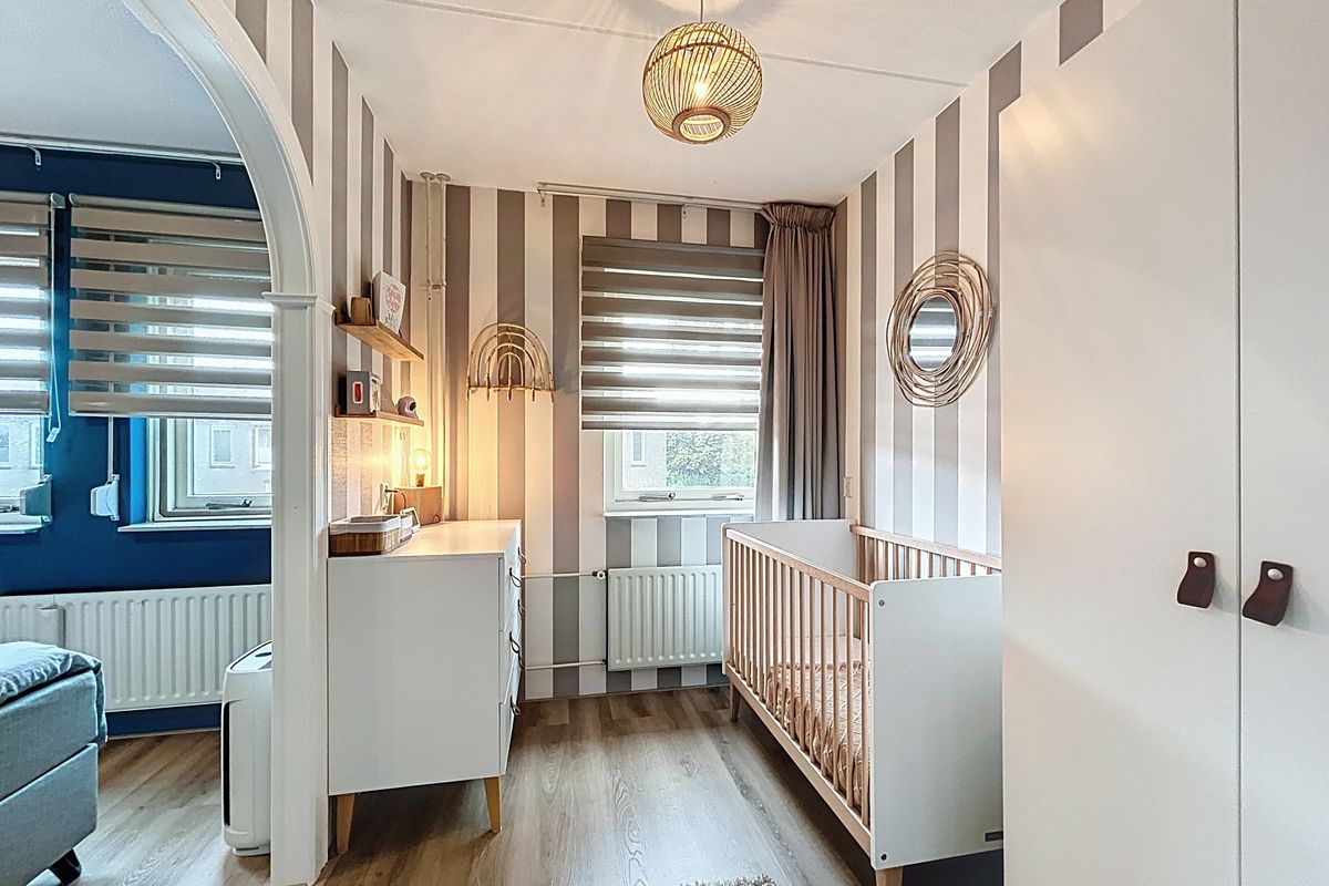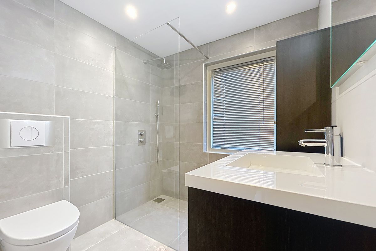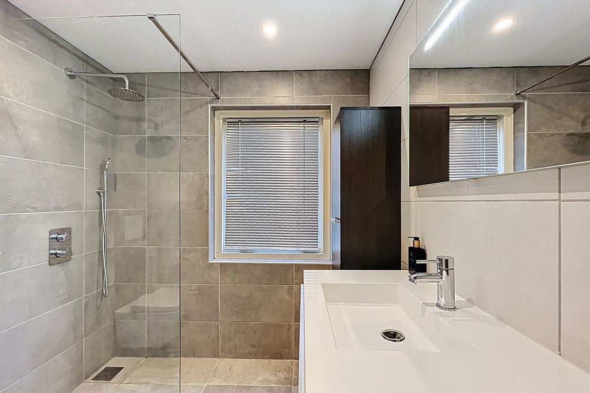 Vanuit de trap in de woonkamer komen we aan op de overloop van de eerste verdieping. Deze verdieping biedt plaats voor twee slaapkamers en een badkamer. Deze badkamer is in 2016 luxe gerenoveerd en beschikt over een grote inloopregendouche, een wastafel met meubel en spiegel en een hangtoilet. De slaapkamers zijn ook nog eens verrassend ruim. De (voormalige) twee slaapkamers aan de voorzijde zijn samengevoegd tot één hele royale slaapkamer. Hier heb je alle ruimte voor een tweepersoonsbed, bureau en inloopkledingkast. Nu is het kleine gedeelte ingericht als kinderkamer. Door de muur ertussen weer op te vullen is heel eenvoudig de extra slaapkamer te creëeren. De tweede slaapkamer op deze verdieping is ook erg ruim met genoeg plaats voor een tweepersoonsbed en een kledingkast.