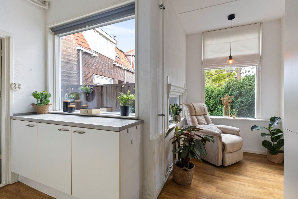 Entree, hal met meterkast en trapopgang. Ruime, daglichtvolle living met een riante woonkamer en een moderne, open inbouwkeuken in de aanbouw. De keuken is geplaatst in een hoekopstelling en voorzien van o.a. een SMEG gasfornuis, koel- en vrieskast, magnetron en vaatwasser. Aansluitend aan de keuken is er een praktische bijkeuken met de aansluitingen voor het witgoed, het toilet en toegang tot de stadstuin achter de woning. Vanuit de bijkeuken kom je tevens in de geheel betegelde badkamer voorzien van wastafelmeubel, designradiator en ligbad. De achtertuin is onderhoudsvriendelijk aangelegd met sierbestrating en degelijk schuttingwerk en is achterom bereikbaar via een zijpoort. Vanuit de tuin heb je ook de toegang naar de solide stenen fietsenberging. Terug in de woning kom je vanuit de hal met de trap op de ruime overloop van de eerste verdieping. De overloop biedt toegang tot 3 (voorheen 4) ruime slaapkamers. Alle slaapkamers zijn voorzien van een nette laminaatvloer, veel lichtinval en vaste kasten. De slaapkamer aan de achterzijde biedt toegang tot een ca. 20m2 groot dakterras met een prima zonligging op het westen.