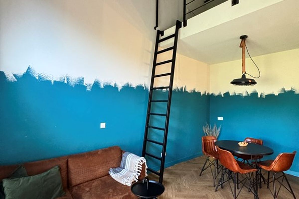 Sfeervol woon-/leefgedeelte met slaapvide, bereikbaar via vaste laddertrap