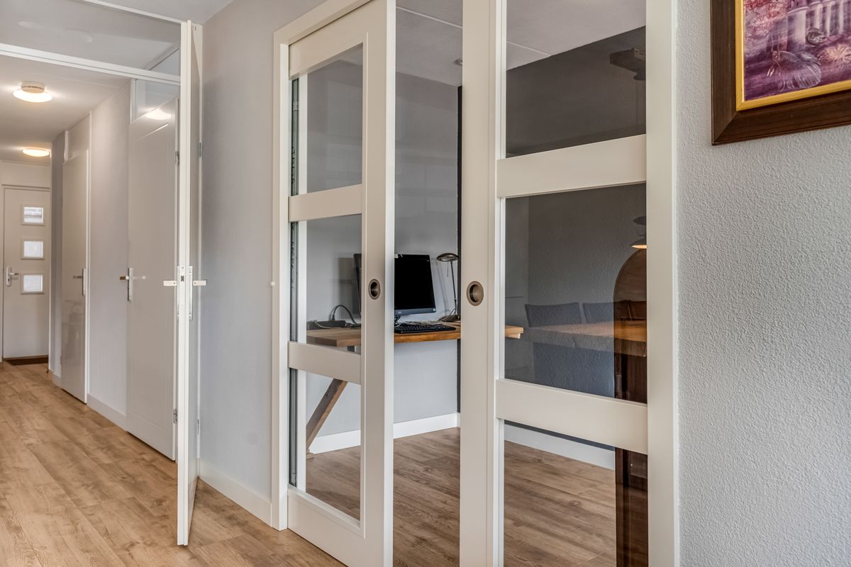 Bij aankomst parkeren we de auto op de eigen parkeerplaats, welke behoort bij het appartement. Het complex is voorzien van een beveiligde entree met brievenbussen en is voorzien van een lift. De living meet circa 26 vierkante meter en biedt voldoende plaats voor een zitgedeelte en een eettafel. De open keuken is praktisch ingericht en is onder andere voorzien van een vaatwasser, gaskookplaat, een rvs-afzuigkap en een koel/vriescombinatie. Naast de living bevindt zich een ruime werkkamer/hobbykamer van circa 7 vierkante meter, welke kan worden afgesloten van de living. Een ideale plek om thuis te werken, als hobbykamer of om te gamen!