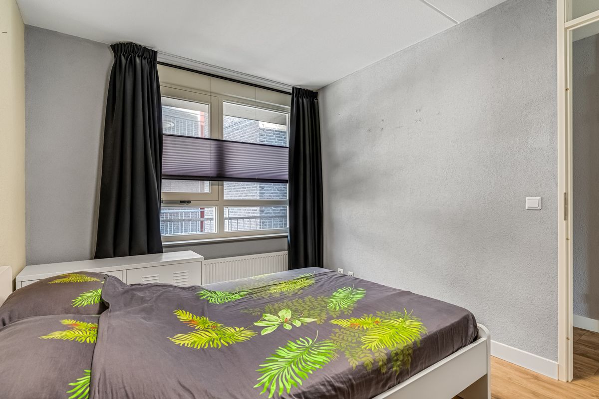 De slaapkamer ligt aan de binnenzijde van het complex en biedt met circa 12 vierkante meter meer dan genoeg ruimte voor een groot tweepersoonsbed en een kledingkast.