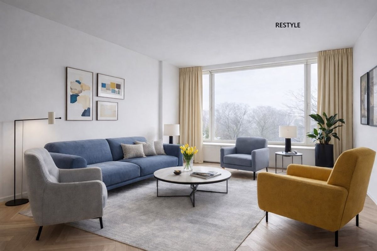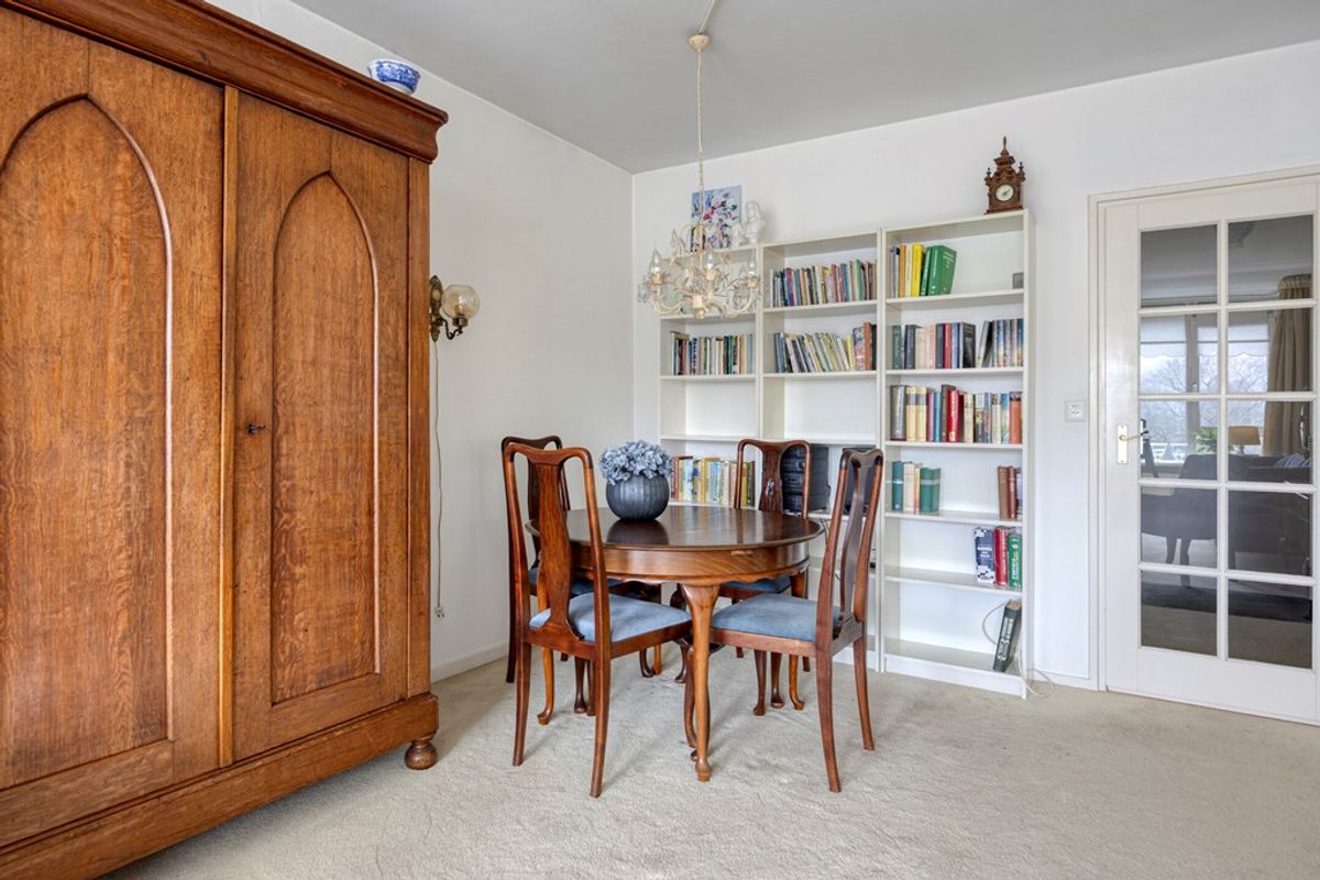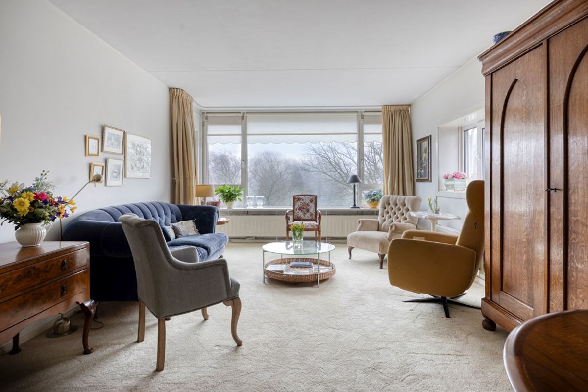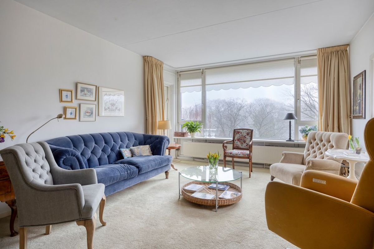 De ruime, open woonkamer wordt gekenmerkt door een prettige lichtinval die de ruimte een frisse en aangename sfeer geeft. Hier heeft u volop mogelijkheden om een comfortabele zithoek en een gezellige eethoek te creëren, geheel afgestemd op uw woonwensen. Dankzij de directe toegang tot het balkon loopt binnen naadloos over in buiten, wat het woongenot nog eens extra vergroot. Het fraaie uitzicht op de bosrijke omgeving vanuit zowel de woonkamer als het balkon maken dit tot een heerlijke ruimte.