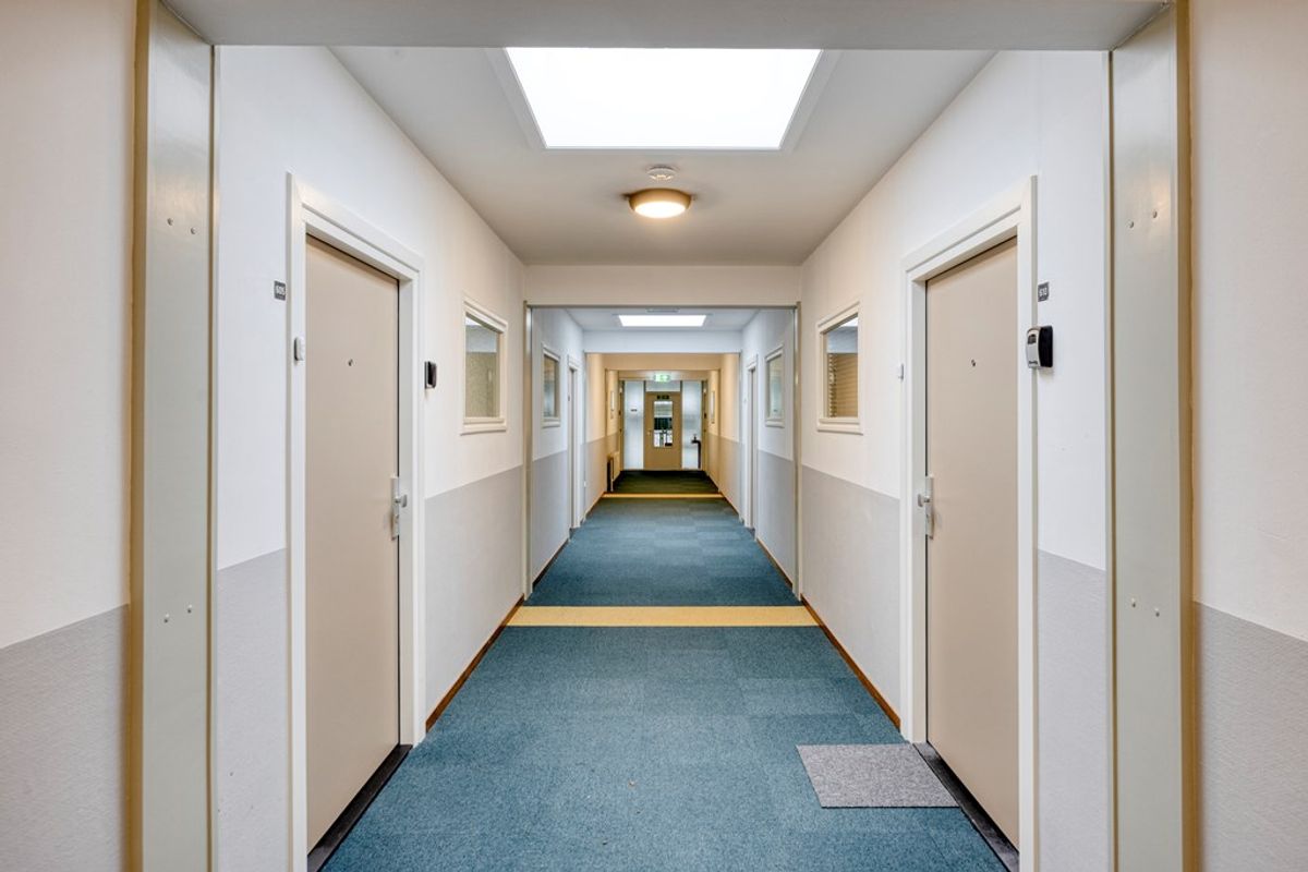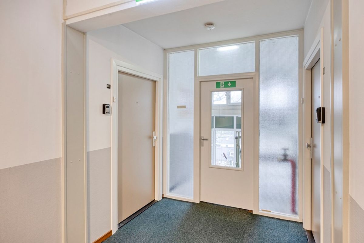 U betreedt het complex via de gezamenlijke entree, waar zich de brievenbussen, intercominstallatie en het trappenhuis met lift bevinden. Eenmaal binnen in het appartement komt u in de hal. Hier is ruimte voor een kapstok en-/of een opbergmeubel. De hal vormt het centrale hart van de woning en biedt toegang tot alle vertrekken, waardoor de indeling praktisch en overzichtelijk aanvoelt.