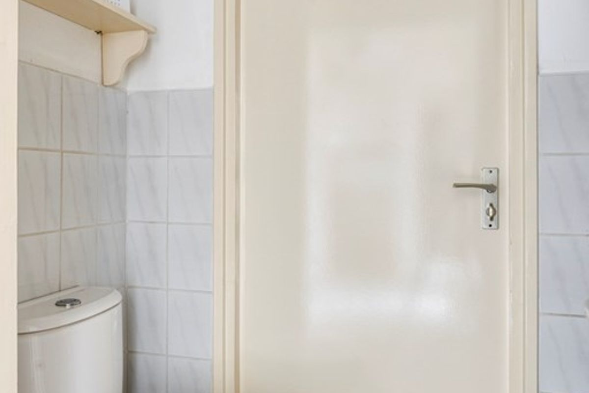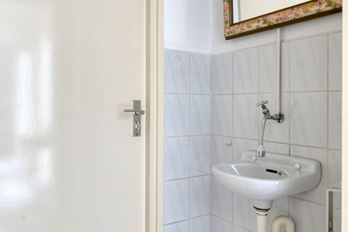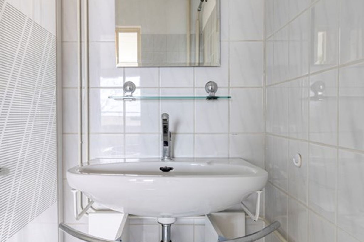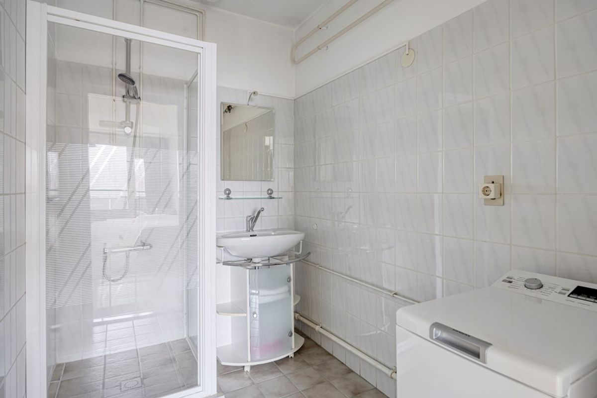 De badkamer is volledig betegeld en netjes afgewerkt. U beschikt hier over een ruime douchecabine, een wastafel met spiegel en een opbergmeubel. Daarnaast is de witgoedaansluiting hier gesitueerd, wat het geheel praktisch en efficiënt maakt. De separate toiletruimte is eveneens verzorgd uitgevoerd en vergroot het comfort van de woning.