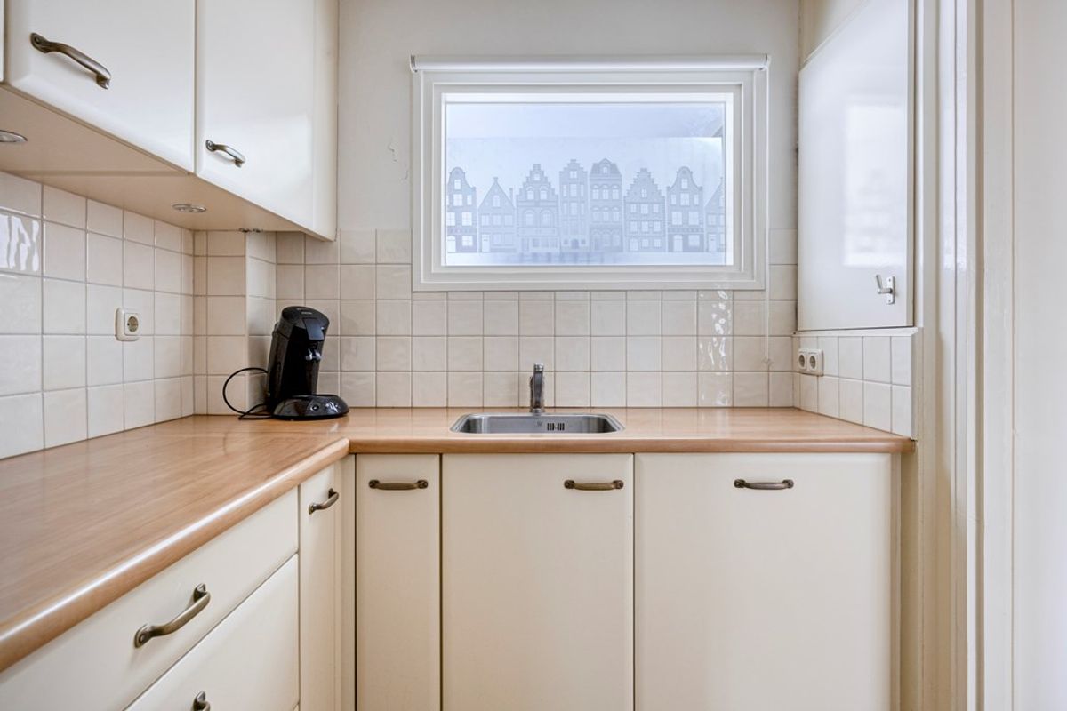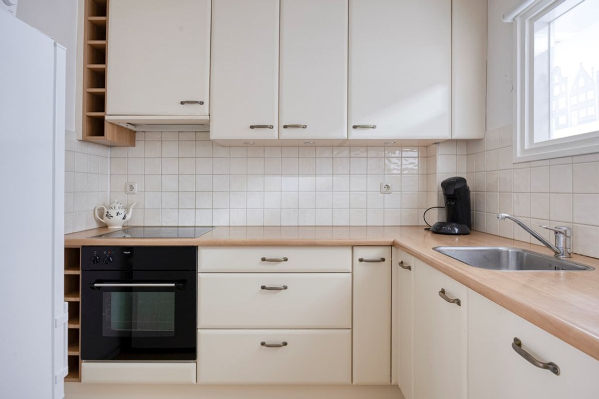 De keuken grenst aan de hal en is uitgevoerd met een L-vormig aanrechtblad, wat zorgt voor een praktische werkindeling. U beschikt hier over een spoelbak, een inductiekookplaat met afzuigkap en een ingebouwde ovencombinatie. Daarnaast is er een vaatwasser aanwezig en bieden de lades en kastjes volop opbergruimte voor uw keukengerei en voorraad. De keuken verkeert in goede staat en biedt u tegelijkertijd de mogelijkheid om deze naar eigen inzicht te moderniseren en zo uw persoonlijke stijl toe te voegen.