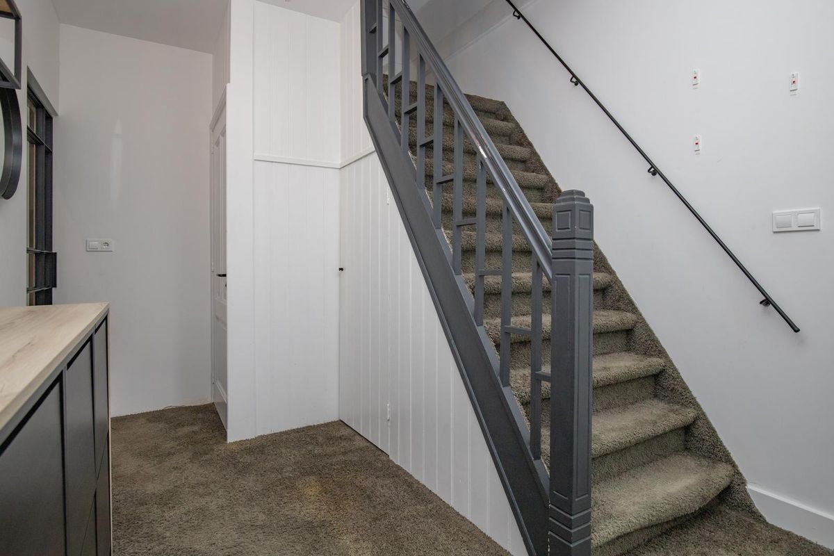 Op de eerste verdieping bevinden zich vier kamers, waaronder een ruime master bedroom en drie overige (slaap)kamers. Eén van de kamers is momenteel ingericht als kleedruimte, maar biedt voldoende daglicht en ruimte om als werk- of slaapkamer te gebruiken. De moderne badkamer is een plaatje: luxe uitgevoerd met grijze betegeling, strakke wanden, vloerverwarming, een verzonken ligbad, inloopdouche, tweede toilet en een stijlvol wastafelmeubel.