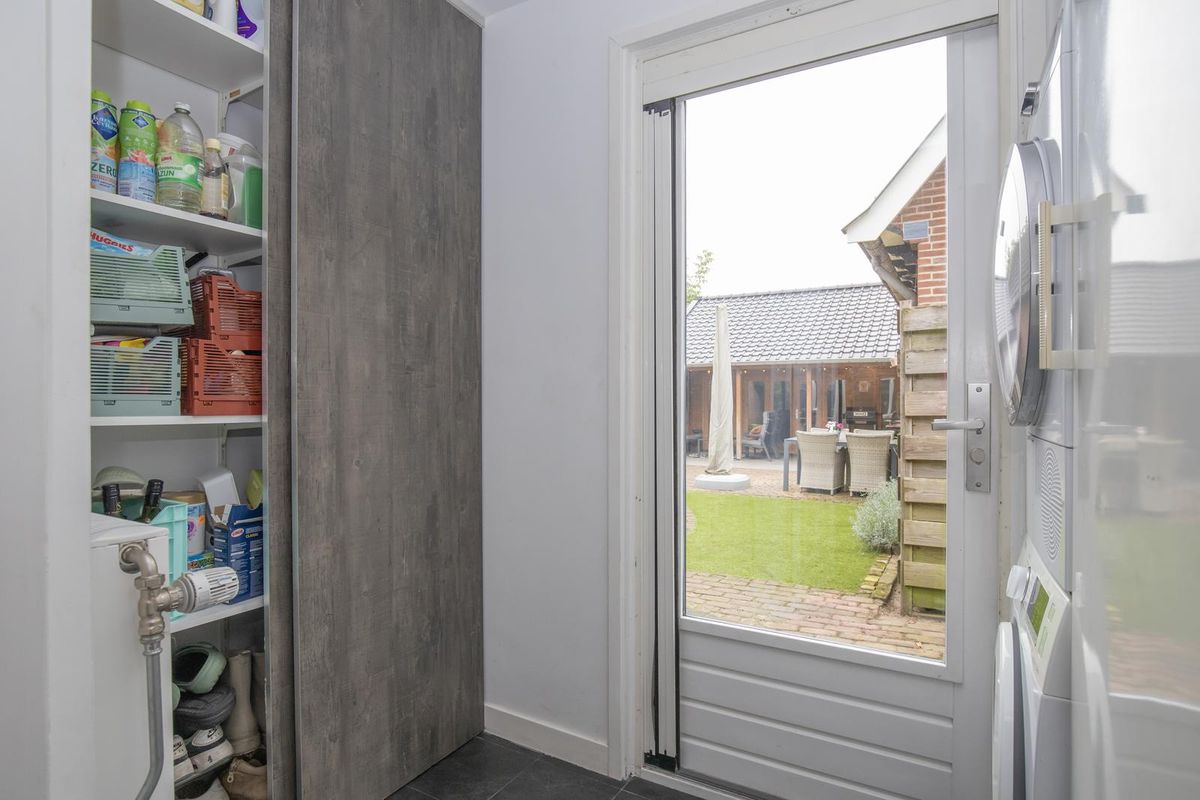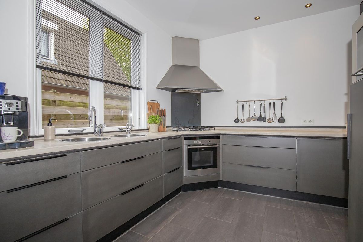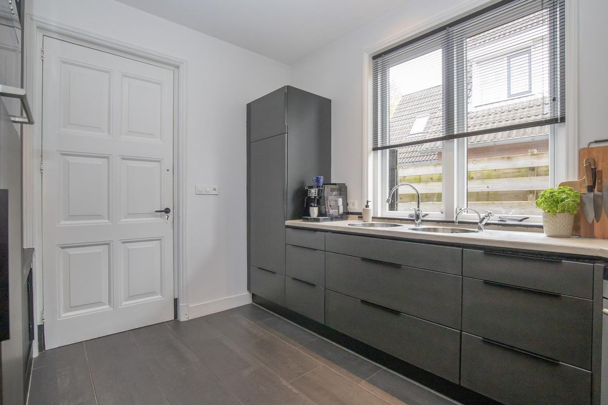 Je komt binnen in een nette hal met trapopgang, trapkast en een toiletruimte. Aan de voorzijde bevindt zich de gezellige woonkamer met houtenvloer, een sfeervolle houtkachel en uitzicht op de groene straat. De woonkamer loopt naadloos over in de eetkamer en open keuken, voorzien van een uitgebreide L-vormige opstelling en een extra kastenwand. De keuken is compleet uitgerust met o.a. een 5-pits gasfornuis, afzuigkap, dubbele spoelbak met Quooker kraan, koelkast, combioven, magnetron en vaatwasser. De vloer is betegeld en voorzien van comfortabele vloerverwarming. Aangrenzend vind je de praktische bijkeuken met witgoedaansluitingen, die toegang geeft tot de achtertuin. Hier vind je een sfeervolle veranda en een ruime, aangebouwde berging – ideaal voor hobby’s of extra opslag.