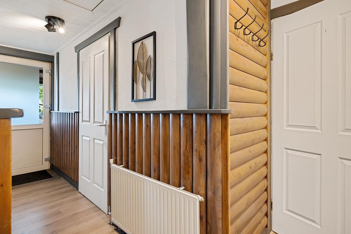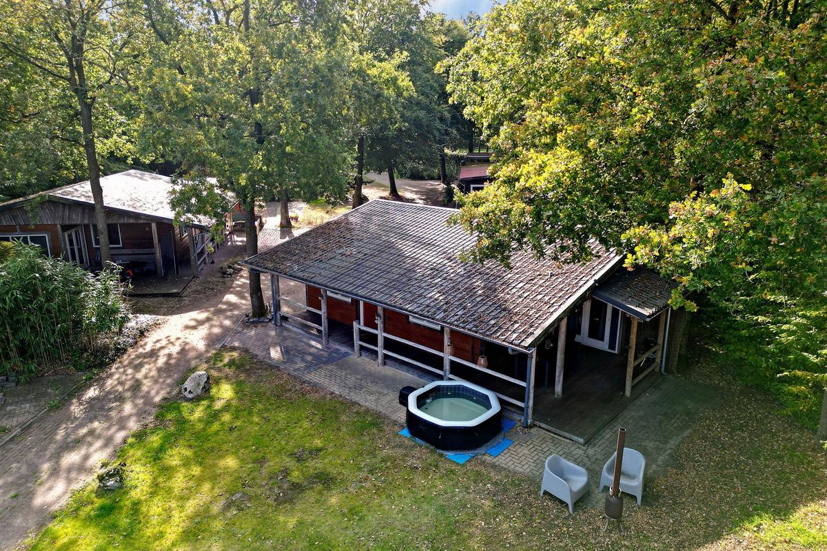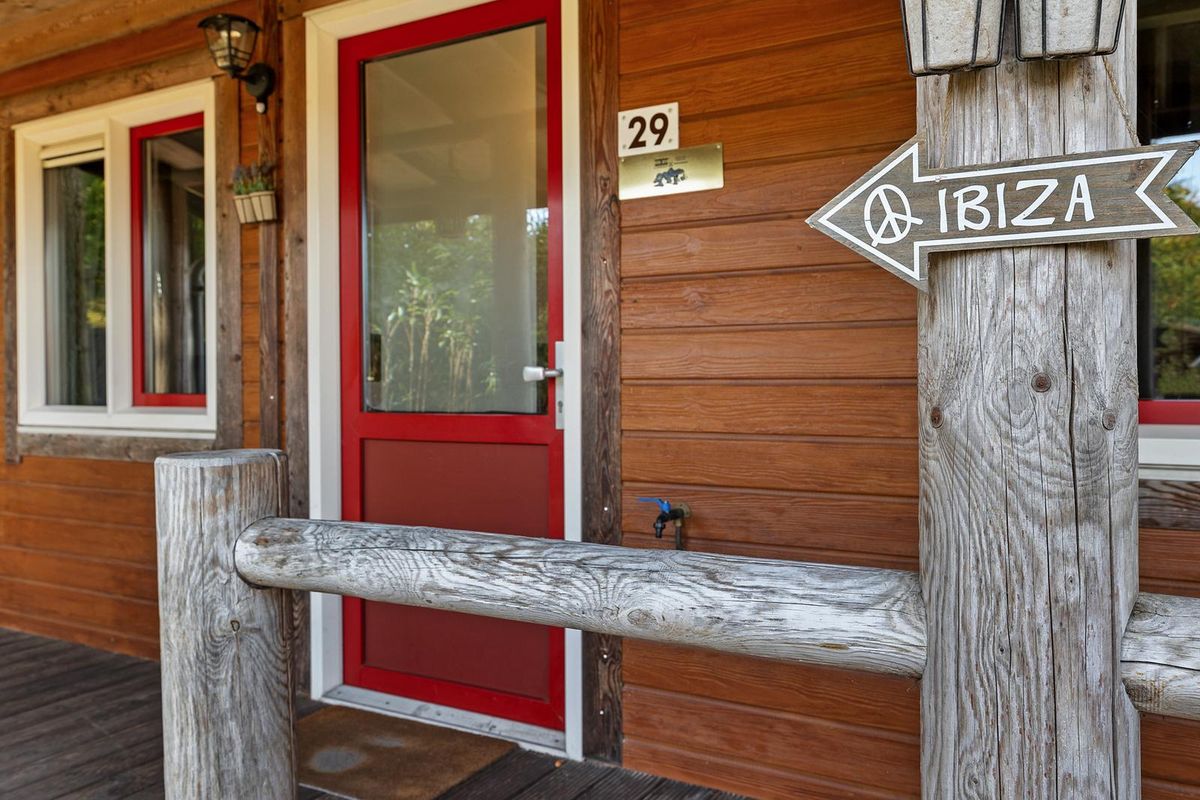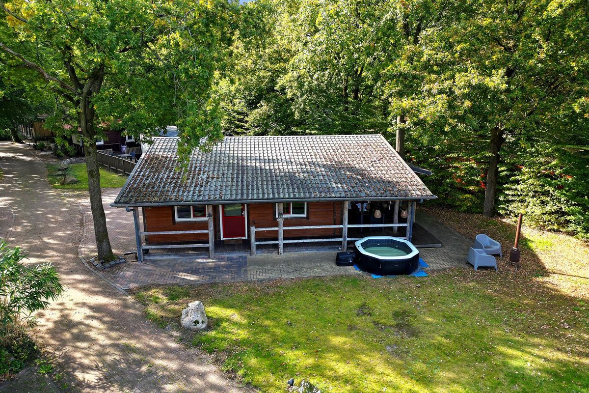 Wat meteen opvalt, is de royale veranda die aan de voor- en rechterzijde van de chalet is gebouwd. Met een oppervlakte van ongeveer 29 m² en volledig overkapt, kun je hier het hele jaar buiten zitten, ongeacht het weer. De aanwezige jacuzzi maakt het ontspannen buitenleven compleet en zorgt voor dat echte vakantiegevoel.
