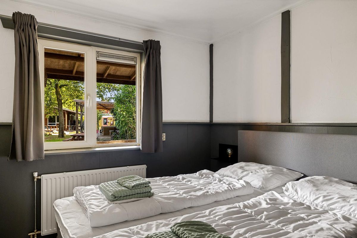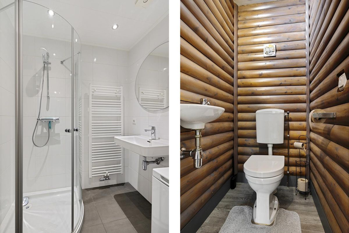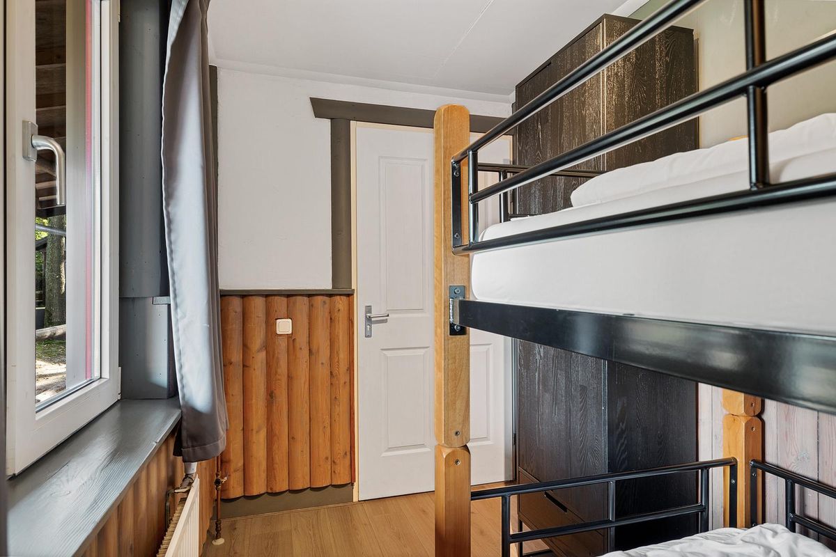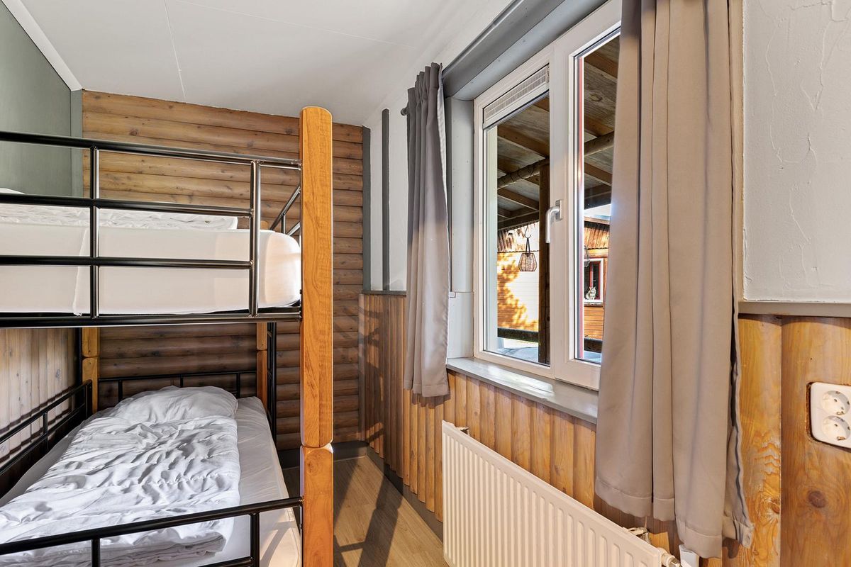 De chalet beschikt over drie slaapkamers. Twee daarvan zijn ingericht met tweepersoonsbedden, terwijl de derde kamer is voorzien van een stapelbed, wat het geheel zeer geschikt maakt voor gezinnen of gasten. De badkamer is functioneel en verzorgd, met een douchecabine, wastafel, designradiator en wasmachine.