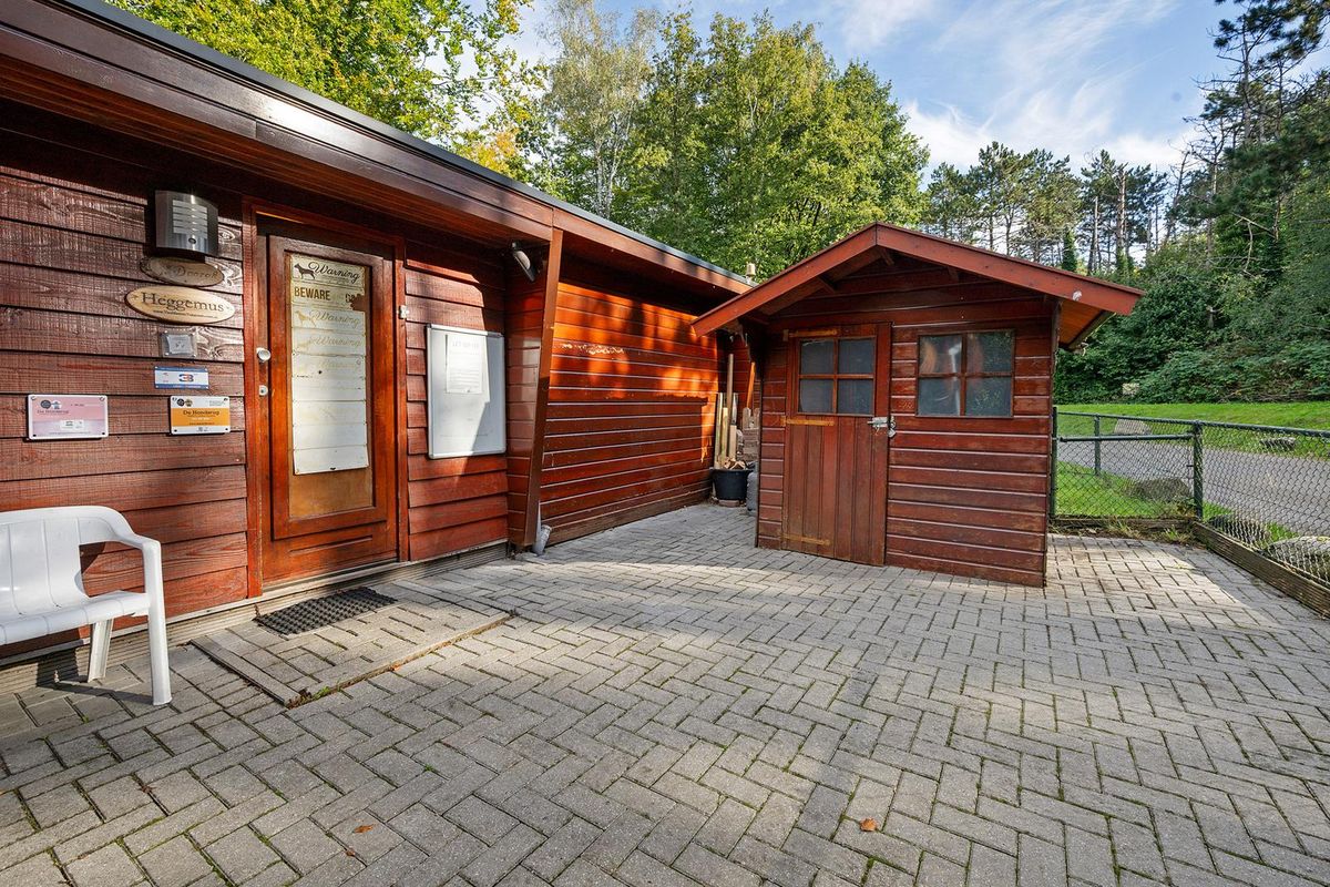 Via de volledig bestraatte tuin bereik je zowel het chalet als het praktische schuurtje.