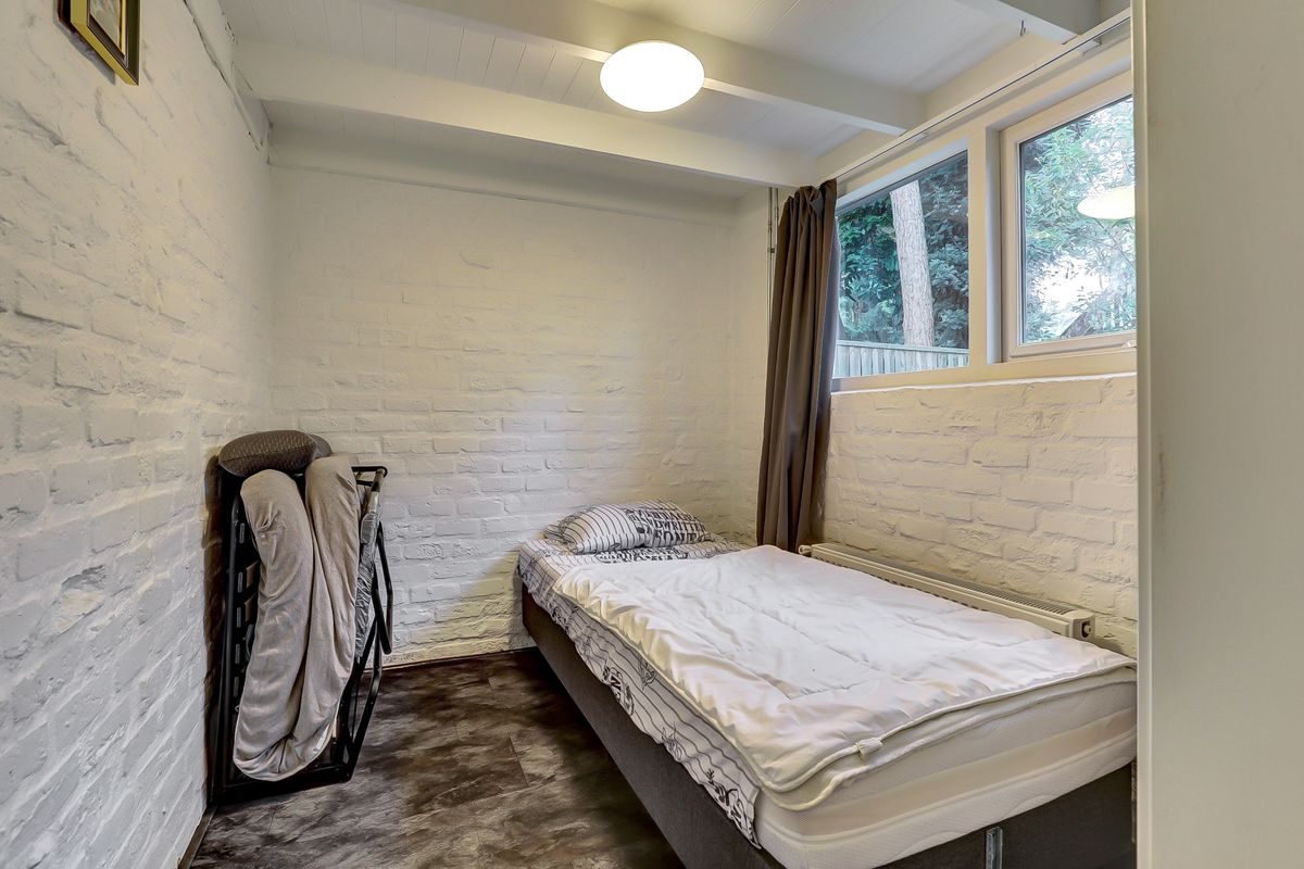 Zodra je het smalle bospad opdraait, voel je de hectiek van alledag van je afglijden. Verscholen in het bos, omringd door het zachte ruisen van de bomen en het gezang van vogels, ligt dit charmante stenen boshuis met een karakteristieke houten verdieping. Een heerlijke plek waar comfort en natuur in harmonie samenkomen, ideaal om te ontspannen, op te laden en volop te genieten van het buitenleven. De woonkamer en open keuken vloeien moeiteloos in elkaar over, waardoor de ruimte uitnodigt tot samenzijn. Terwijl je kookt, praat je gezellig mee met wie aan tafel zit of op de bank ontspant. De grote ramen laten het bos bijna naar binnen komen. Aan de rechterkant van de woning bevindt zich een knusse slaapkamer op de begane grond met daar tegenover de badkamer. De wenteltrap leidt naar boven waar nog eens twee slaapkamers beschikbaar zijn die een fijn uitzicht op het omliggende bos hebben. De tuin ligt rondom de woning en heeft een overdekt terras bij de ingang en voldoende ruimte om lekker te kunnen tuinieren of ontspannen. De ultieme ontspanning vind je hier echter in de sauna die achter de woning staat waardoor iedere dag hier als een mini-vakantie zal voelen!