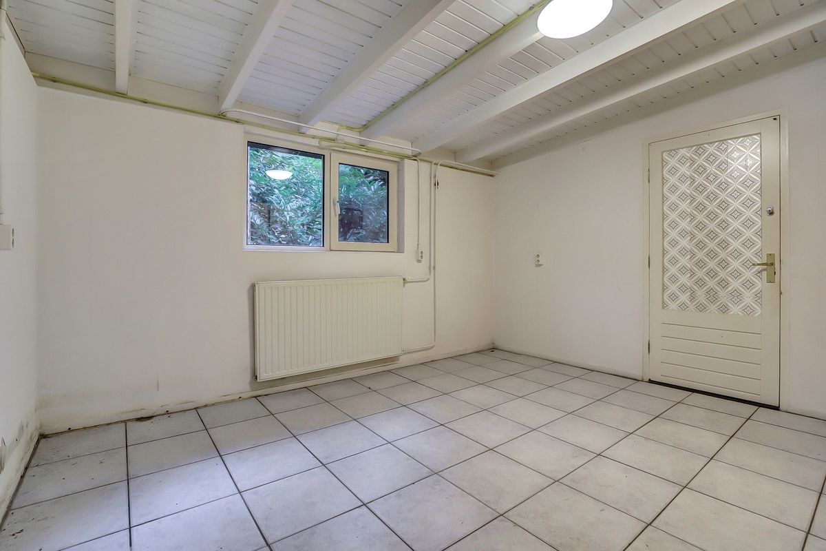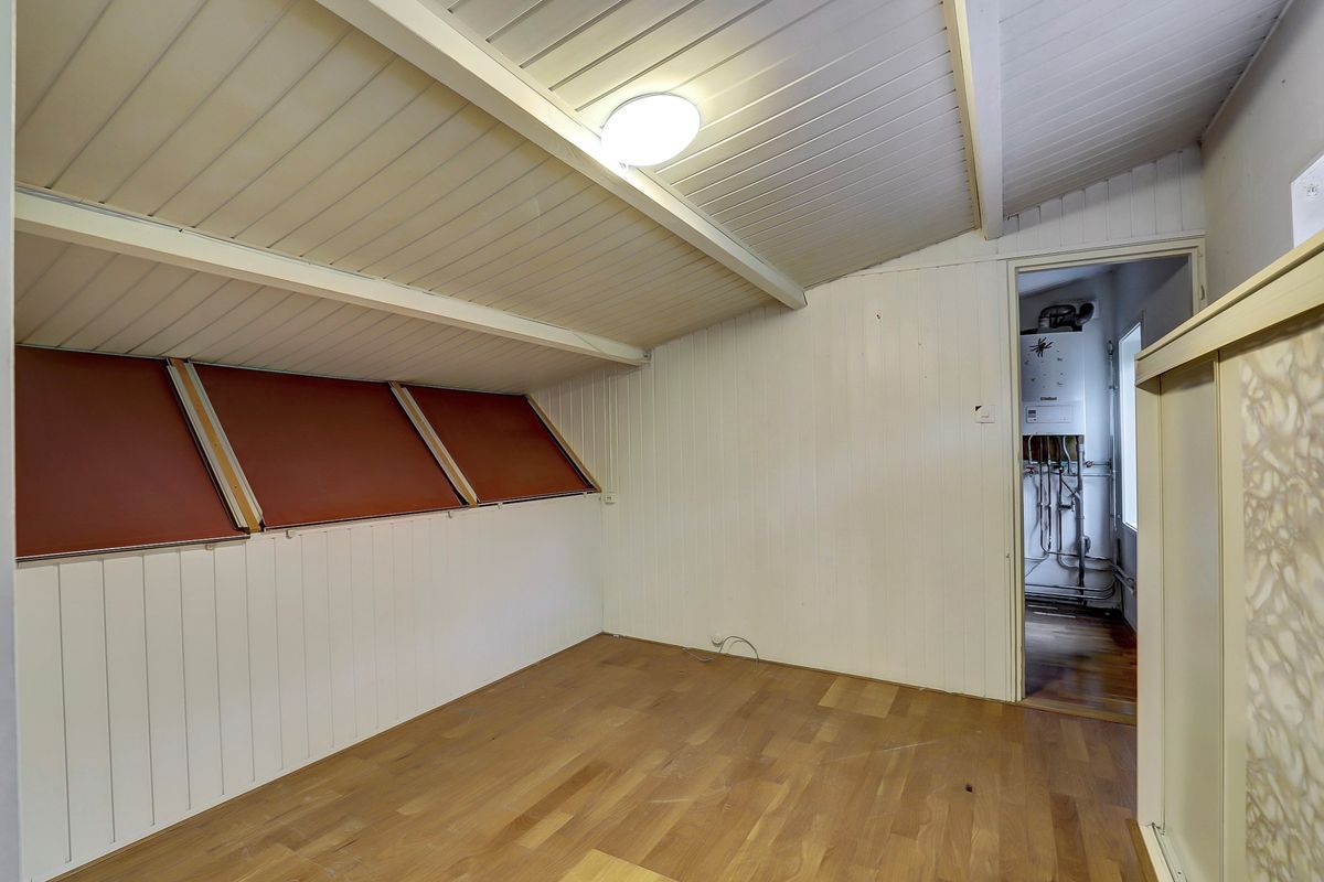De woning heeft een slaapkamer en een kleine badkamer op de begane grond. De slaapkamer ligt aan de achterkant van de woning en is ruim genoeg om een tweepersoonsbed in te plaatsen. Achter de slaapkamer ligt de witgoedruimte en een berging. Deze berging is ook vanuit de tuin toegankelijk.