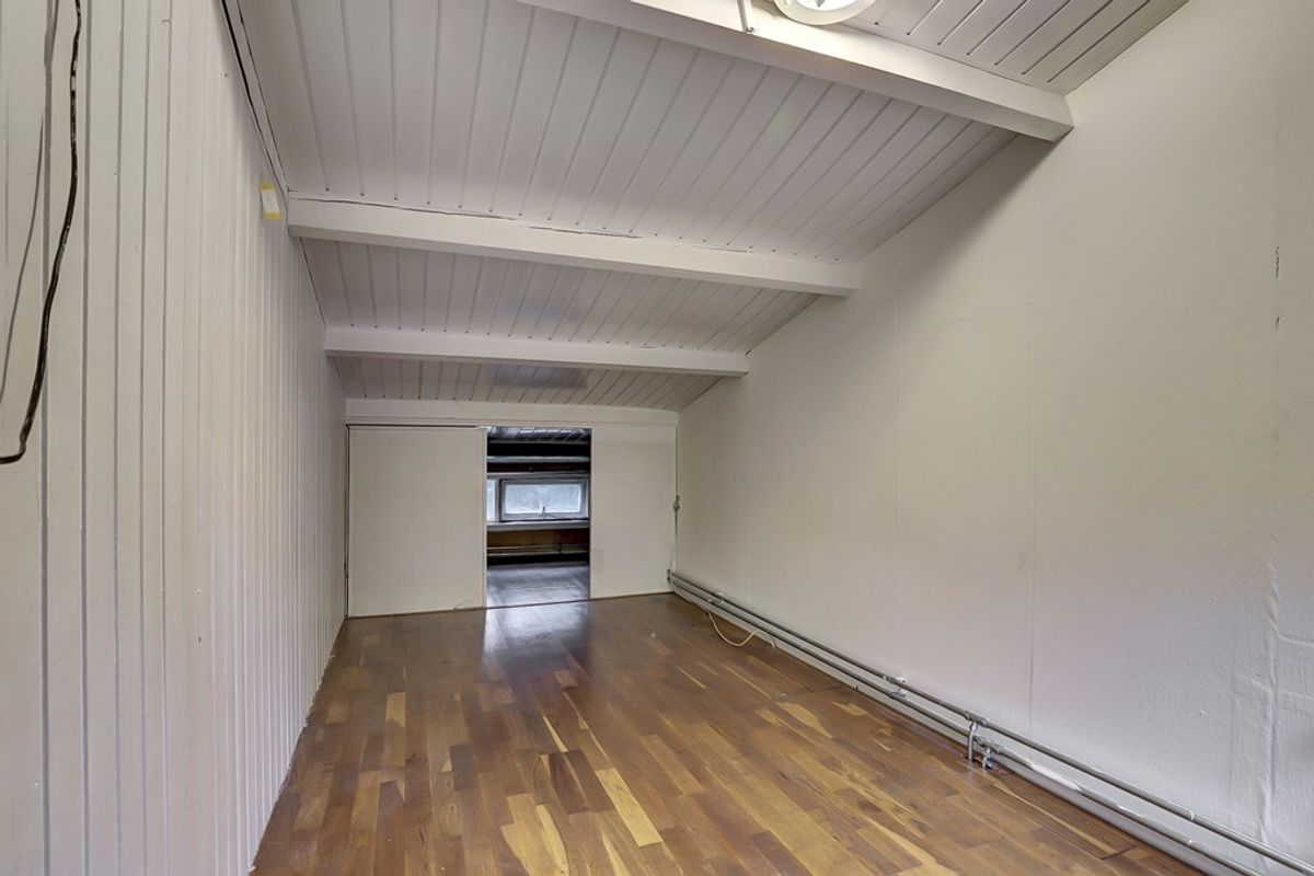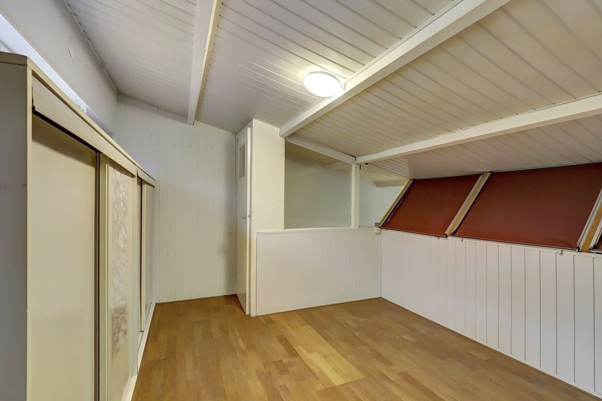 De woning heeft een slaapkamer en een kleine badkamer op de begane grond. De slaapkamer ligt aan de achterkant van de woning en is ruim genoeg om een tweepersoonsbed in te plaatsen. Achter de slaapkamer ligt de witgoedruimte en een berging. Deze berging is ook vanuit de tuin toegankelijk.