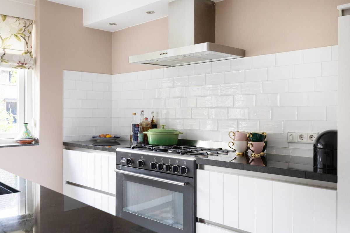 De moderne keuken is het hart van het huis. Voorzien van een kookeiland, 5 pits gasfornuis met oven, koelkast en vaatwasser. Dankzij de comfortabele vloerverwarming, het fraaie tegelwerk en het uitzicht op de tuin aan de voorzijde is dit een heerlijke plek om samen te koken, eten en leven. Vanuit de keuken heb je ook toegang tot het kelder of souterrain en de trap naar boven.