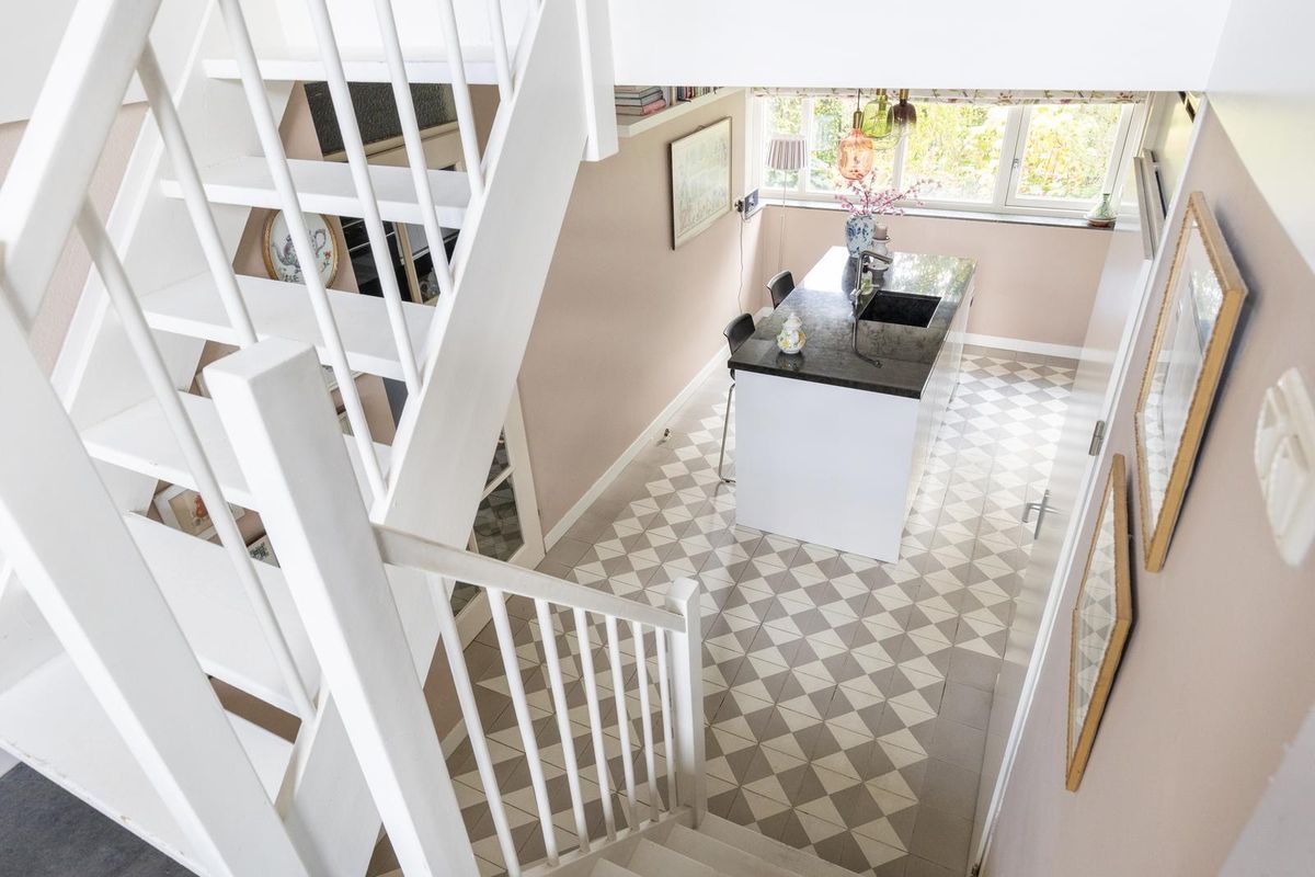 Een volgende trap omhoog leidt naar de zitkamer aan de voorzijde van de woning. Een fijne, rustige ruimte met volop daglicht. Ideaal om te ontspannen met een boek of een filmavond. Op deze verdieping bevindt zich ook een hal met vaste kast en de trap naar de bovenverdieping.