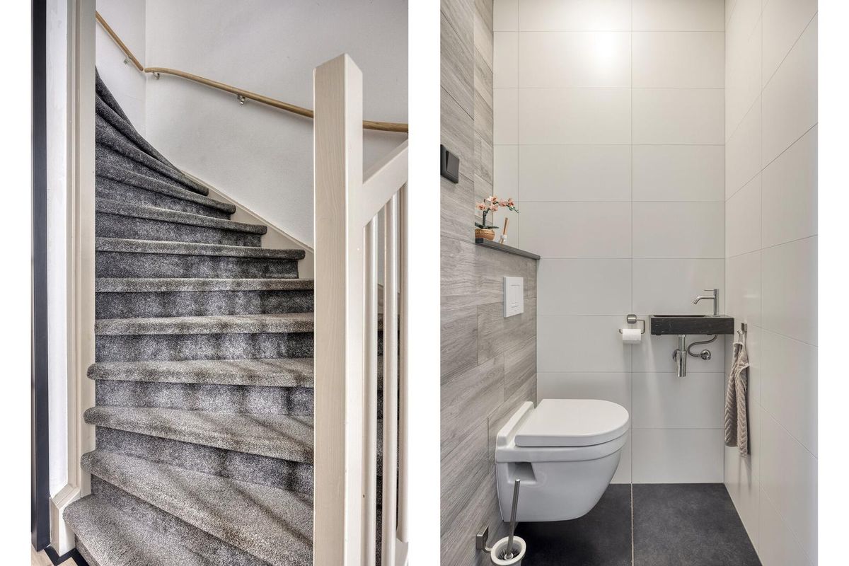 – De trappen zijn bekleed met keurige vloerbedekking.
