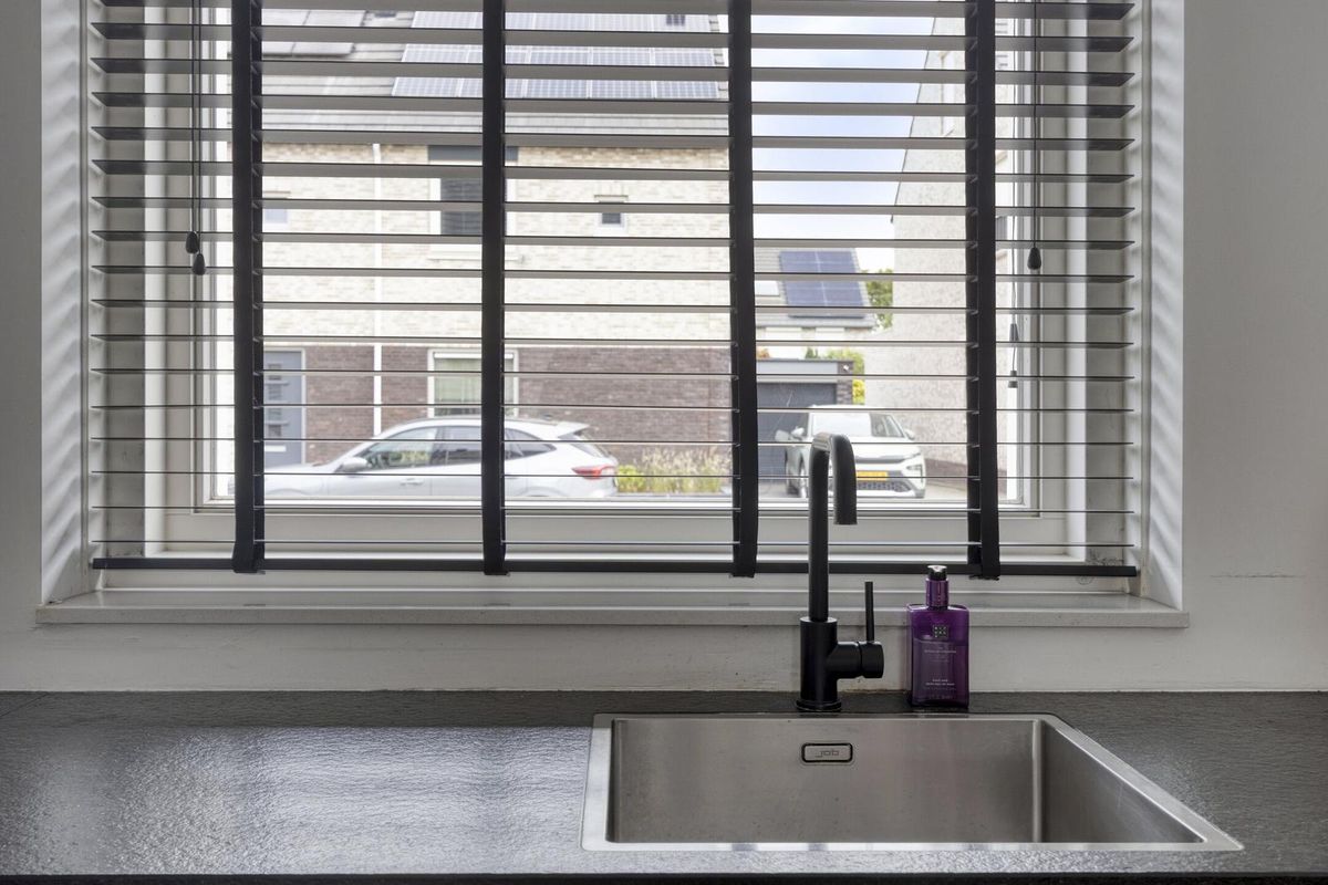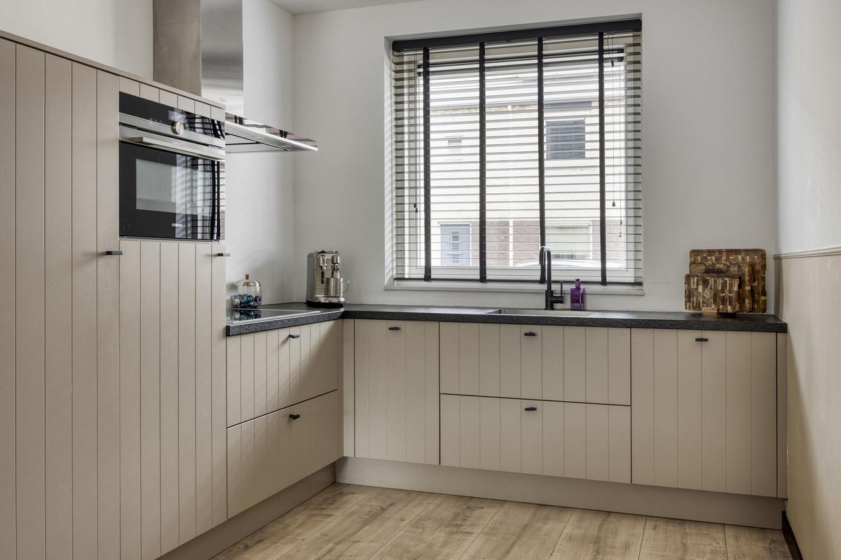 De open keuken (10m²) aan de voorzijde heeft veel berg- en werkruimte.