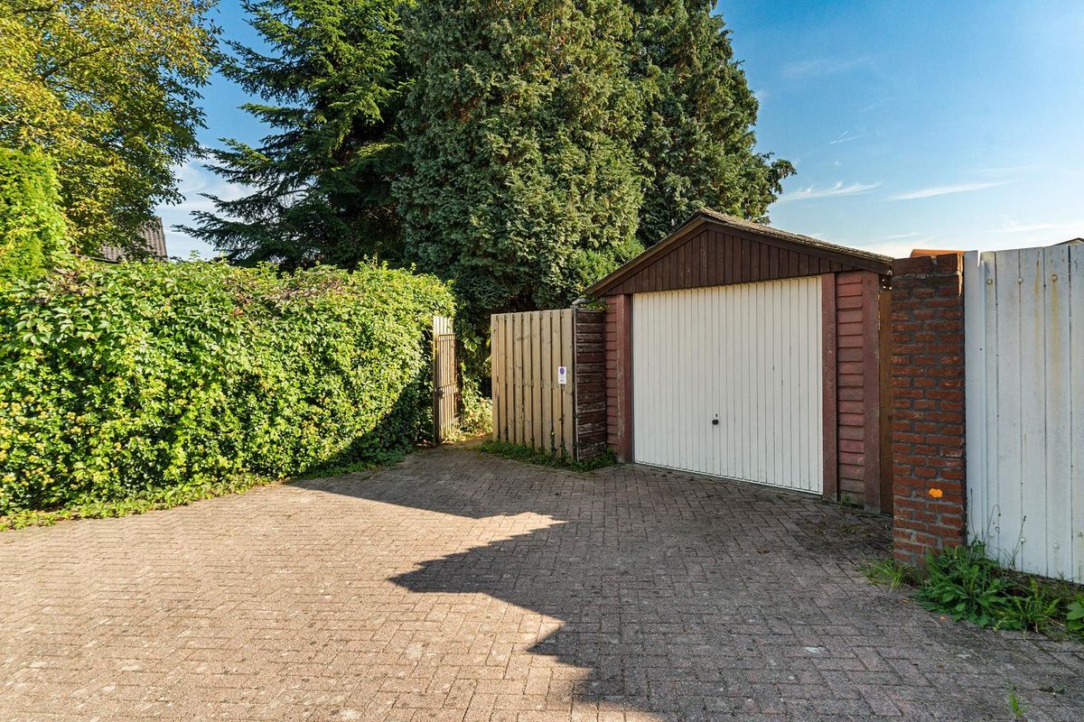 De inpandige garage ligt aan de voorzijde van de woning, de tweede garage bevindt zich achterin de tuin en is bereikbaar via een weg achter de woning.