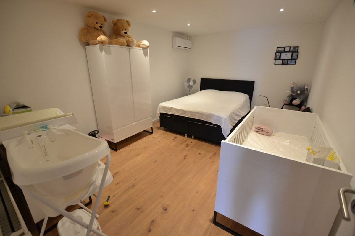 Slaapkamer 4: 4,95 x 3,35 met laminaatvloer, inbouwspots en airco.
