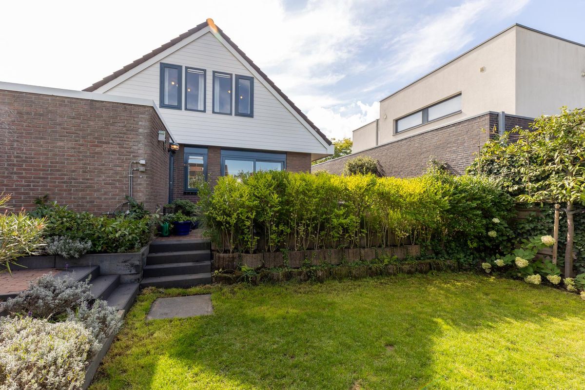 Een fraai aangelegde groene tuin, inpandige garage, praktische bijkeuken, moderne keuken, luxe badkamer en 3 slaapkamers.