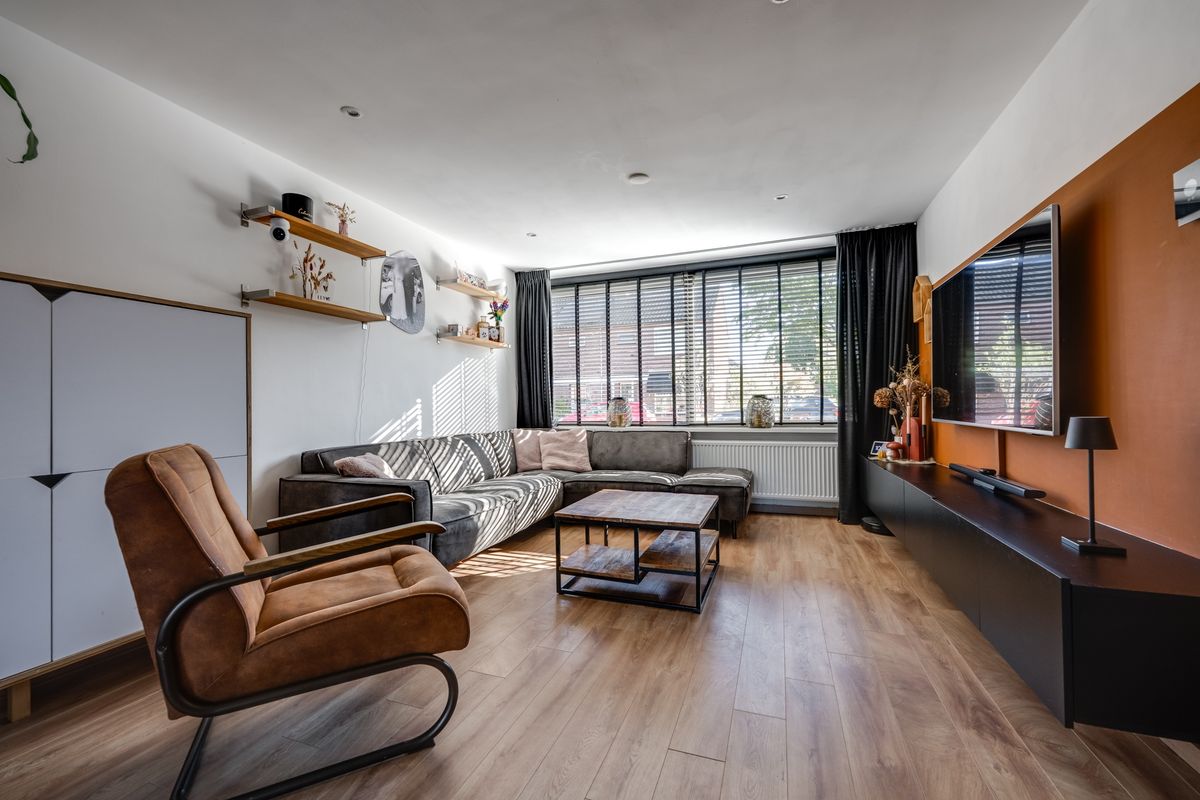 De woonkamer (9,48 m. x 3,60 m.) is aan de achterzijde uitgebouwd, waardoor een mooie open ruimte is ontstaan. De wanden en plafonds zijn glad afgewerkt en v.v. inbouwspots. Er is ruimte genoeg voor een ruime zithoek, apart eetgedeelte, een eigen speelhoek voor de kinderen en er is een vaste kast. Alle kozijnen zijn v.v. dubbel glas en aan de voorzijde hangt een elektrisch rolluik.