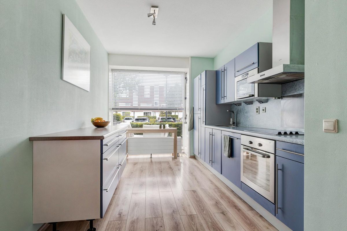 Entree/hal met meterkast, toiletruimte v.v. hangend closet en fonteintje, alsmede trapopgang naar de 1e verdieping. Sfeervolle woonkamer met loopdeur naar de tuin. Ruime, praktische trapkast. Aan de voorzijde gesitueerde keuken met degelijk blad v.v. spoelbak met kraan, keramische kookplaat (4 kookzones), RVS-afzuigkap (recirculatie), oven, separate magnetron, koelkast en separate vriezer, vaatwasmachine en apothekerskast. De begane grond is (uitgezonderd het toilet) v.v. een nette laminaatvloer.