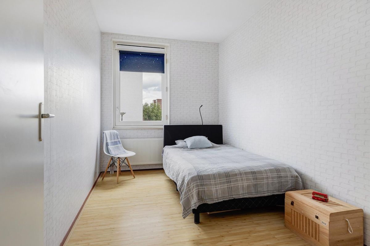 Ruime overloop. Vierde slaapkamer gelegen aan de voorzijde. Vanuit de overloop toegang tot het ruime dakterras. Deze verdieping is v.v. tapijt.