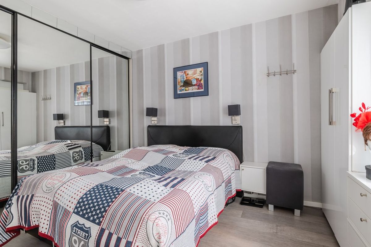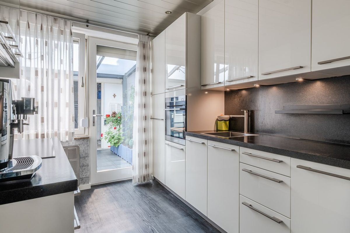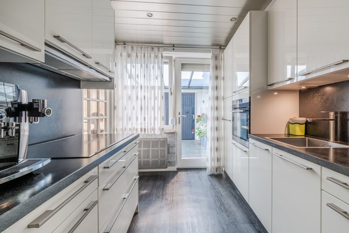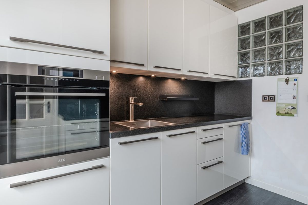 De keuken (ca. 7 m²) is compact maar compleet en voorzien van een inductiekookplaat, afzuigkap, koelkast, vaatwasser en stoomoven. De slaapkamer (ca. 12 m²) is praktisch ingedeeld met ingebouwde kastruimte.