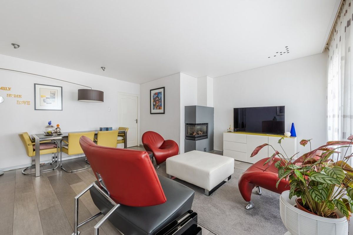 Bij binnenkomst stapt u de lichte woonkamer (ca. 25 m²) binnen, waar de grote raampartijen zorgen voor veel daglicht. De strakke afwerking en neutrale vloer geven de ruimte een moderne uitstraling tevens is er in de woonkamer een sfeervolle gashaard.
