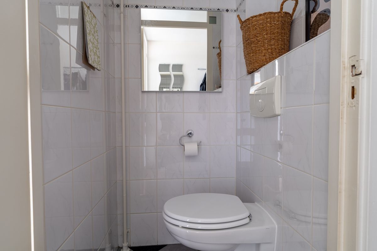 De woonkamer is licht, ruim en bovenal rustig. Geen voorbijrazende auto’s of glurende buren – alleen groen zover je kijkt. Je woont hier op de tiende verdieping, letterlijk boven de drukte, met een uitzicht dat nooit verveelt. De lift brengt je moeiteloos omhoog (en weer omlaag met je boodschappen of wasmand). De hal biedt een handige bergkast voor alles wat je liever niet wilt zien, en het moderne zwevende toilet zorgt meteen voor een frisse binnenkomer.