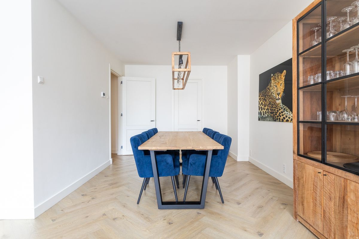 Door het hele appartement ligt een PVC visgraatvloer die zorgt voor een moderne uitstraling met behoud van karakter.