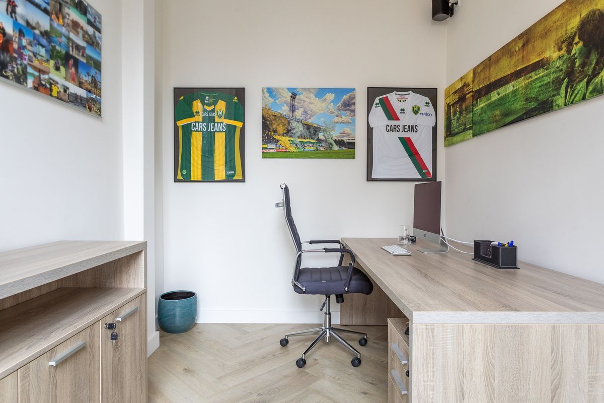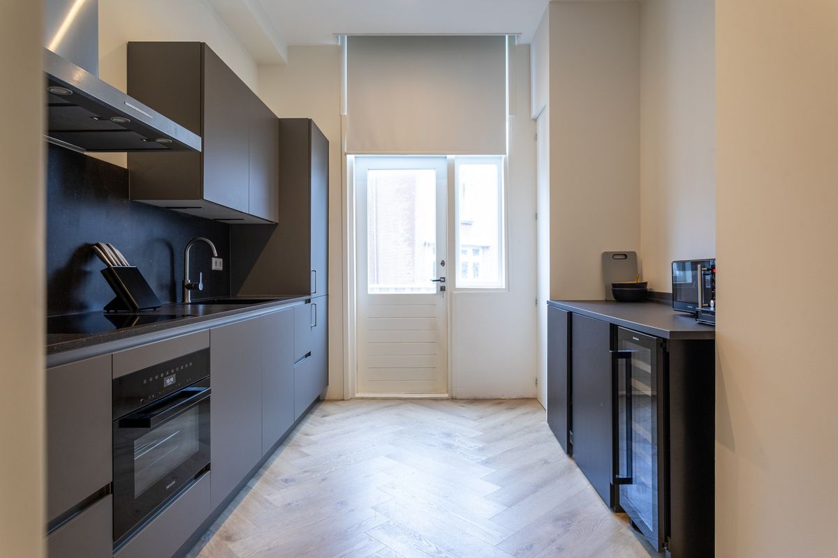 De ruime en lichte woonkamer beschikt over een grote erker met vrij uitzicht over het plein en biedt toegang tot de eerste slaap-/werkkamer. Aan de achterzijde bevindt zich de luxe keuken, voorzien van inbouwapparatuur en een deur naar het balkon. De hoofdslaapkamer ligt eveneens aan de achterzijde, is uitgerust met airconditioning en heeft een directe doorgang naar de badkamer met ligbad, inloopdouche en wastafelmeubel. Er is een separaat toilet aanwezig.