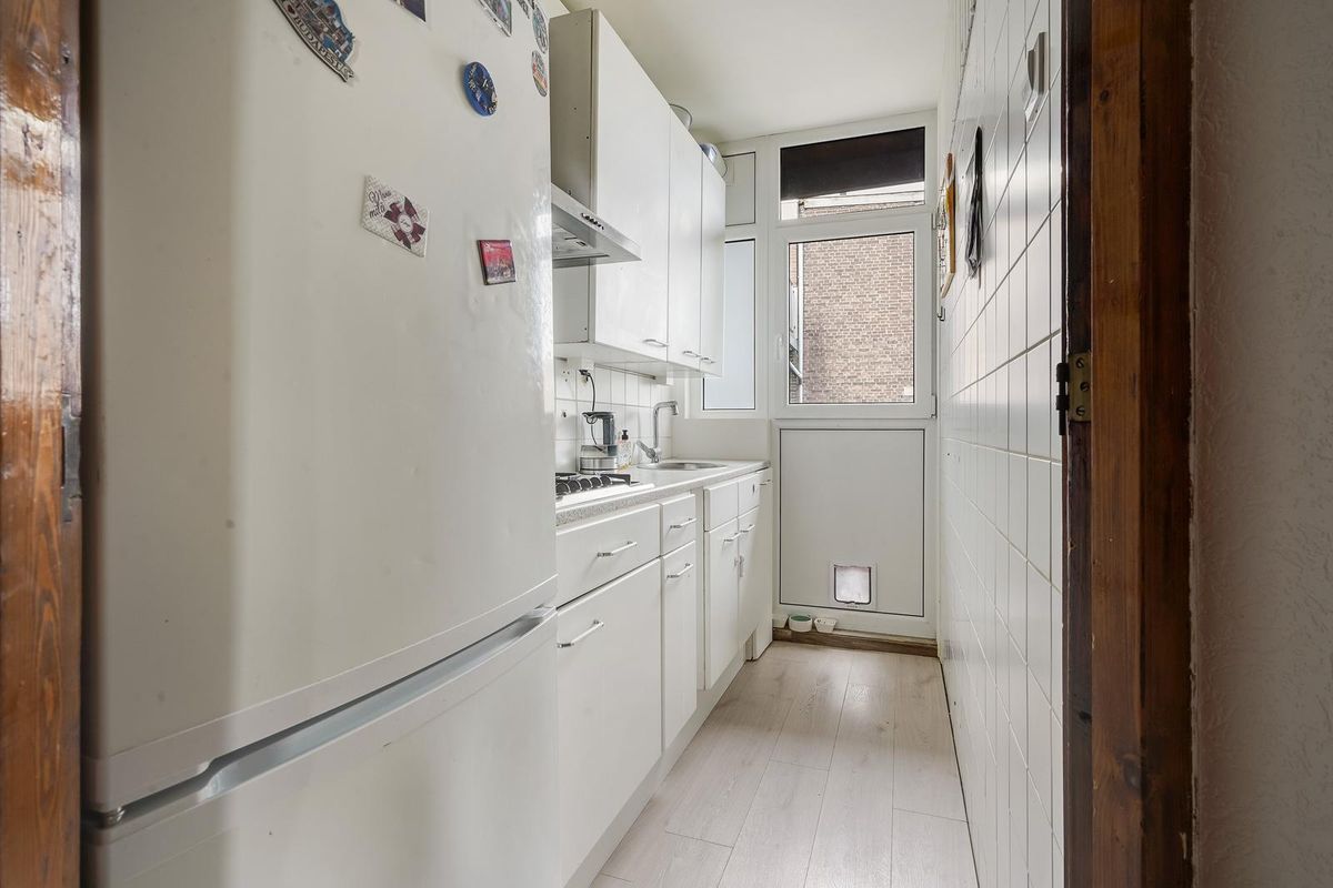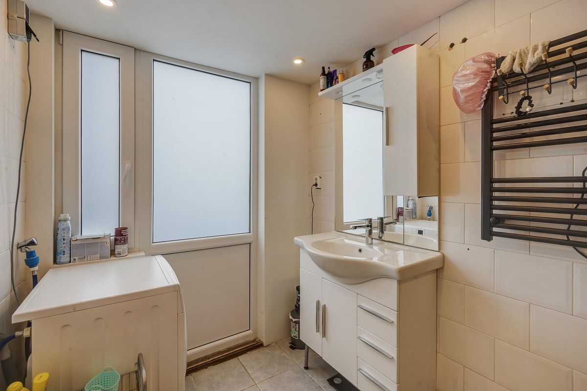 Via een vaste trap bereikt u de tweede verdieping. Hier bevindt zich nog een slaapkamer en de badkamer. De slaapkamer aan de achterzijde biedt direct toegang tot het balkon en het dak. De badkamer is uitgerust met een ligbad met douche, wastafelmeubel en radiator – een fijne plek om tot rust te komen.