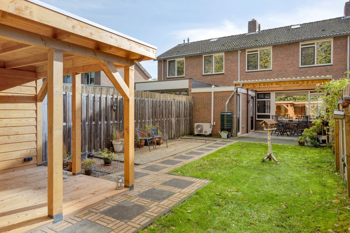 In 2025 is er een prachtige, grote overkapping geplaatst met schuur. Ideaal voor lange zomeravonden. De schuur biedt natuurlijk volop bergruimte voor fietsen en of gereedschap.