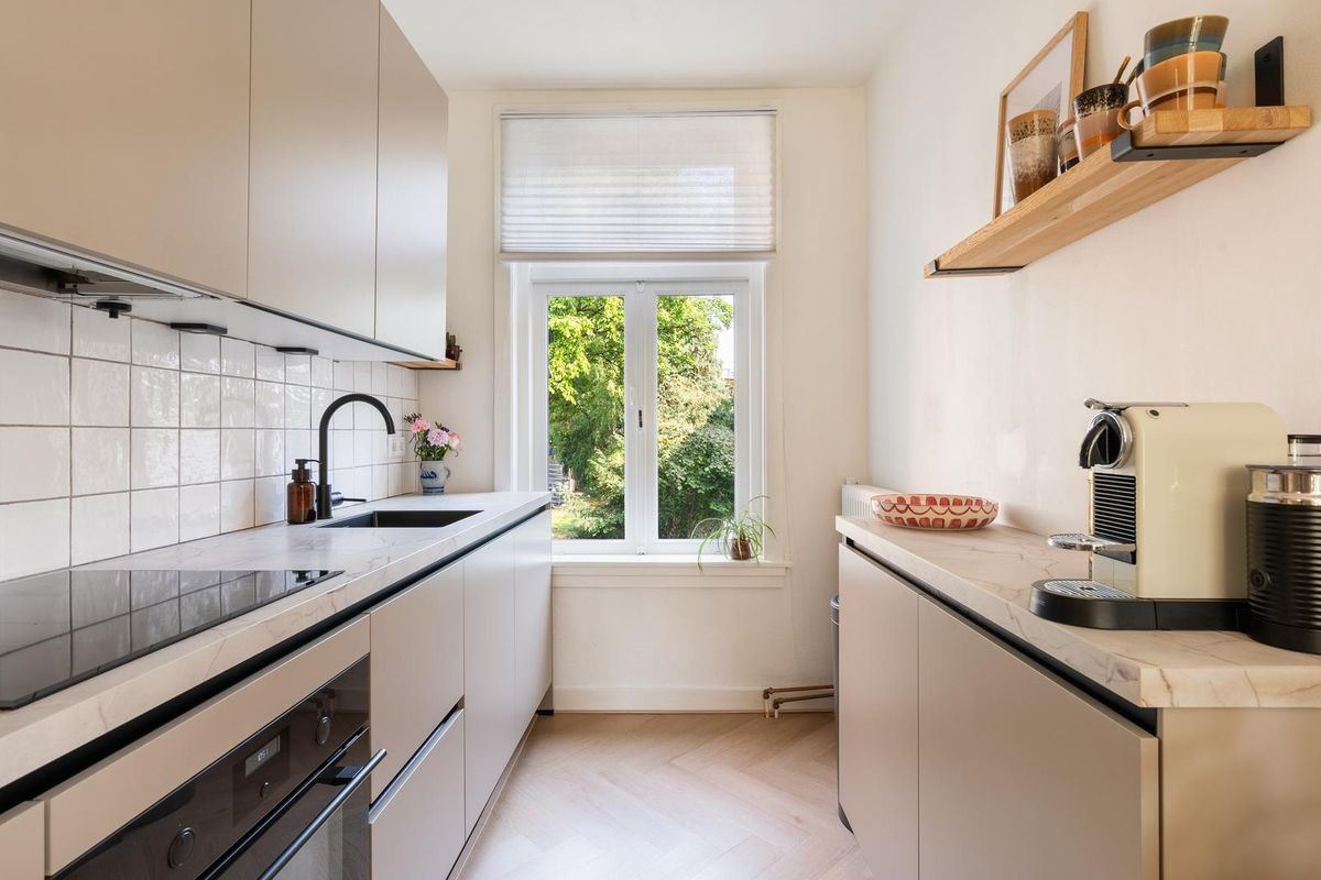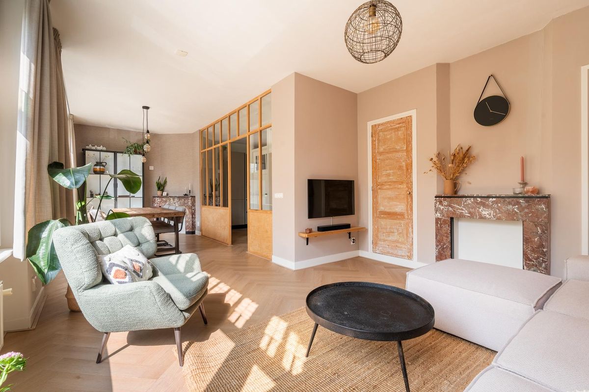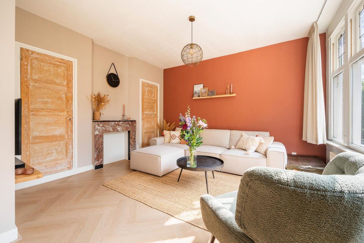 Ruime entree met wasruimte, separaat toilet en toegang tot alle vertrekken op deze verdieping. De originele jaren '30-details, glas-in-loodramen, schouw en paneeldeuren geven de woning een sfeervol karakter. Deze lichte en stijlvolle woonkamer is een perfecte combinatie van comfort en design. Door de grote raampartijen aan de voorzijde treedt er een natuurlijk licht de woning binnen, wat zorgt voor een warme en lichte sfeer. Dit wordt prachtig aangevuld door de lichte visgraatvloer, die stijl en karakter aan de ruimte geeft. Dankzij de L-vormige woonkamer is de ruimte flexibel in te delen, met een mooie scheiding tussen het woongedeelte en eetgedeelte. De moderne keuken is gelegen aan de achterzijde van de woning. De keuken beschikt over diverse inbouwapparatuur, zoals een 4-pits elektrische kookplaat met afzuigkap, vaatwasser, oven en een koel-/vriescombinatie. Via de wasruimte bereik je het 1e balkon, gelegen op het noorden. Hier kan je in de ochtend heerlijk genieten van de zon met een kop koffie! De 1e slaapkamer is gelegen aan de voorzijde van de woning en is multifunctioneel in te richten als kinder-, werk- of slaapkamer.
