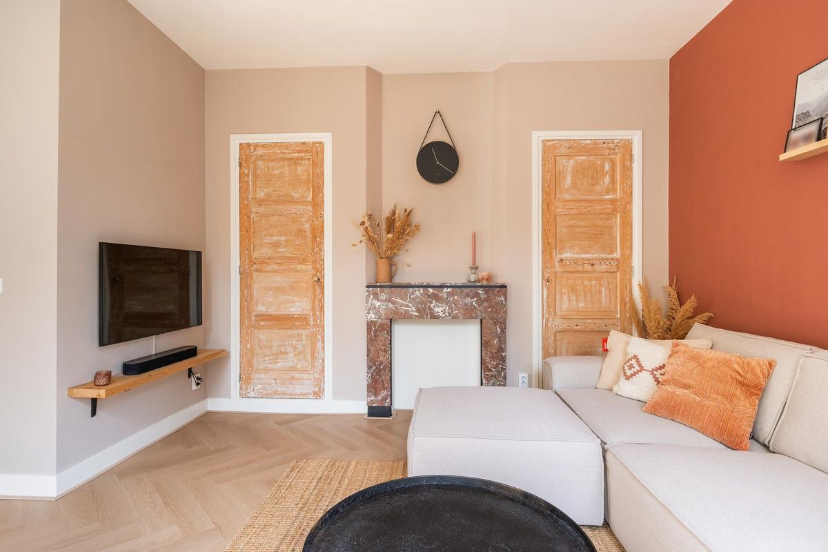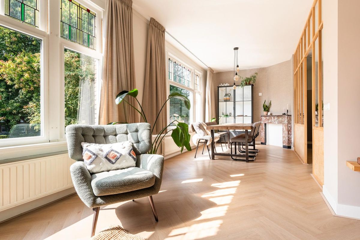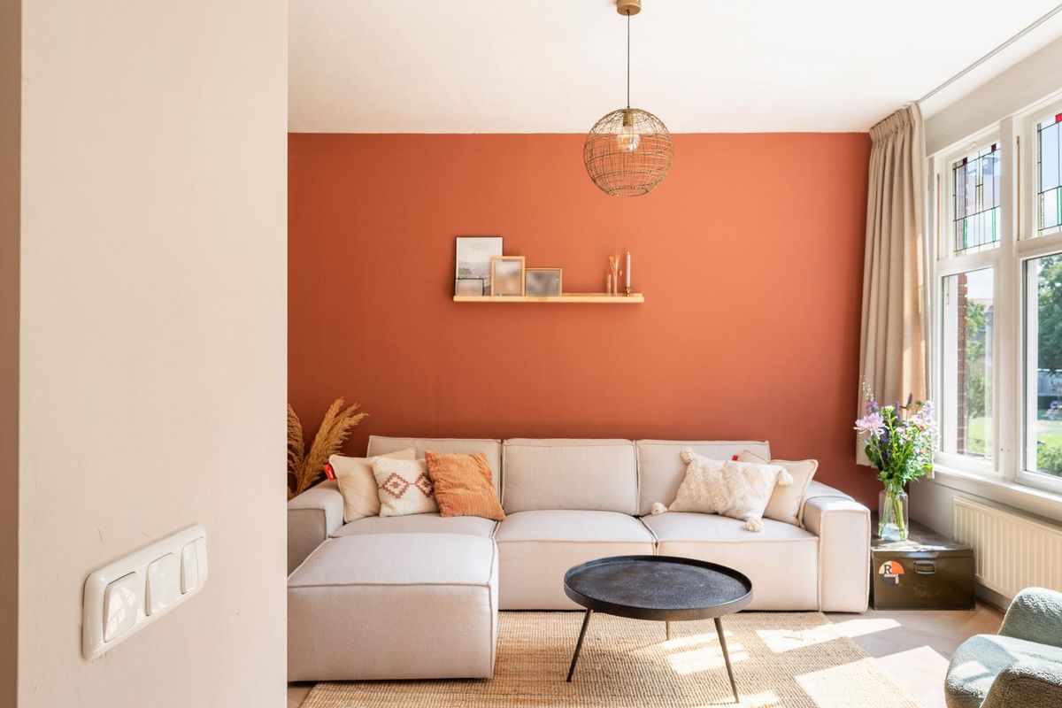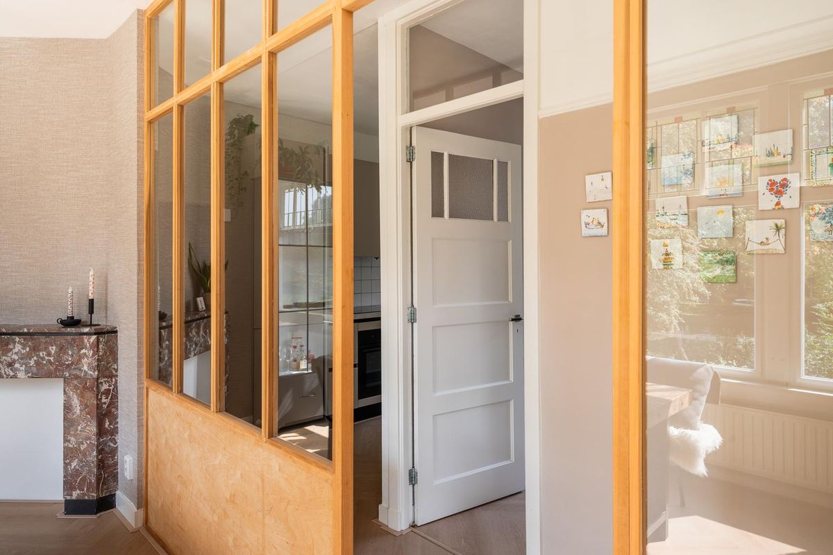 Ruime entree met wasruimte, separaat toilet en toegang tot alle vertrekken op deze verdieping. De originele jaren '30-details, glas-in-loodramen, schouw en paneeldeuren geven de woning een sfeervol karakter. Deze lichte en stijlvolle woonkamer is een perfecte combinatie van comfort en design. Door de grote raampartijen aan de voorzijde treedt er een natuurlijk licht de woning binnen, wat zorgt voor een warme en lichte sfeer. Dit wordt prachtig aangevuld door de lichte visgraatvloer, die stijl en karakter aan de ruimte geeft. Dankzij de L-vormige woonkamer is de ruimte flexibel in te delen, met een mooie scheiding tussen het woongedeelte en eetgedeelte. De moderne keuken is gelegen aan de achterzijde van de woning. De keuken beschikt over diverse inbouwapparatuur, zoals een 4-pits elektrische kookplaat met afzuigkap, vaatwasser, oven en een koel-/vriescombinatie. Via de wasruimte bereik je het 1e balkon, gelegen op het noorden. Hier kan je in de ochtend heerlijk genieten van de zon met een kop koffie! De 1e slaapkamer is gelegen aan de voorzijde van de woning en is multifunctioneel in te richten als kinder-, werk- of slaapkamer.