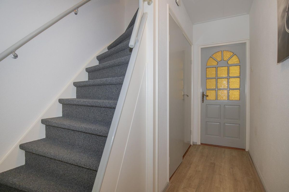 Entree met hal, trapopgang, kelderkast en toilet. Vanuit de hal kom je in de lichte en sfeervolle woonkamer, met grote raampartijen die zorgen voor een prettige lichtinval. De open keuken beschikt over een praktisch keukenblok en een apart gedeelte voor de eethoek.