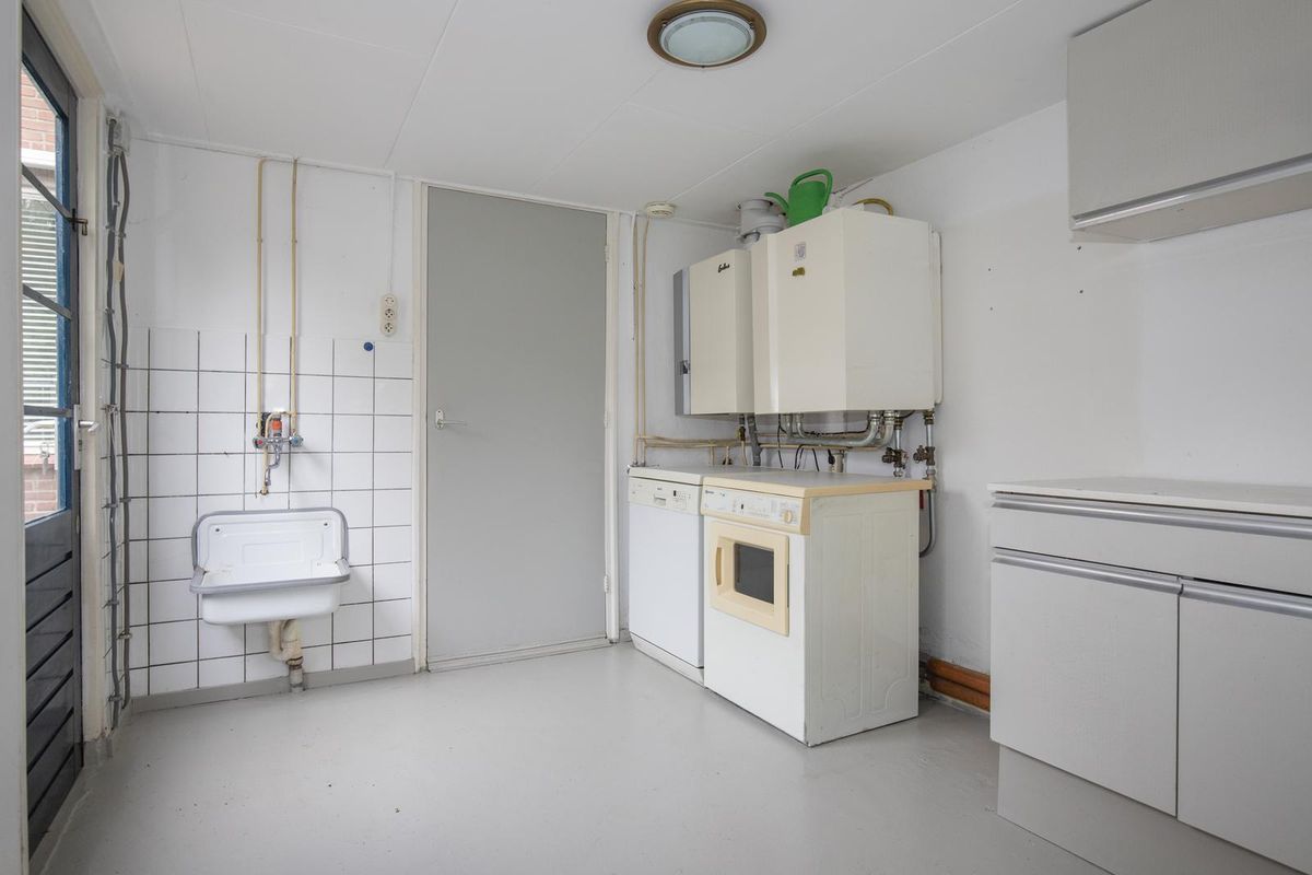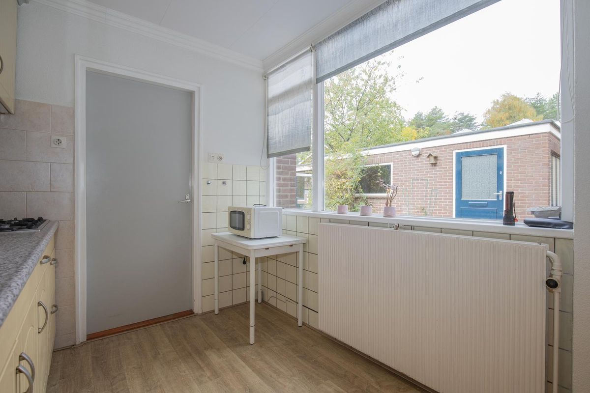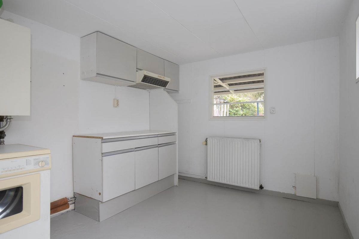 Aangrenzend bevindt zich de verwarmde, riante bijkeuken met extra keukenblok en aansluitingen voor witgoed. Vanuit hier stap je direct de fijne, zonnige tuin in.