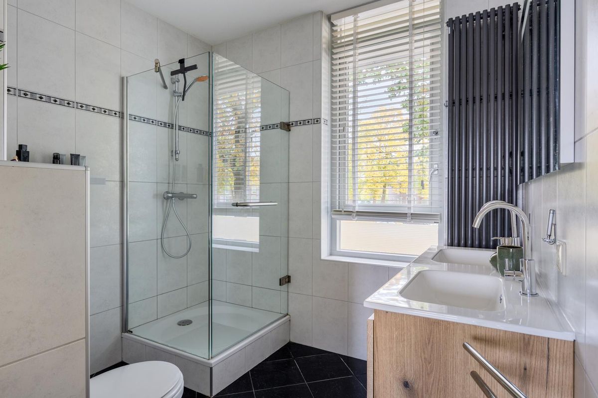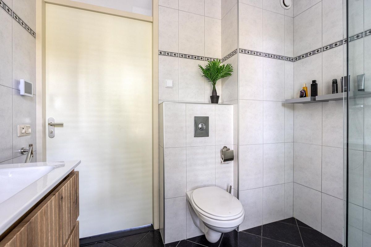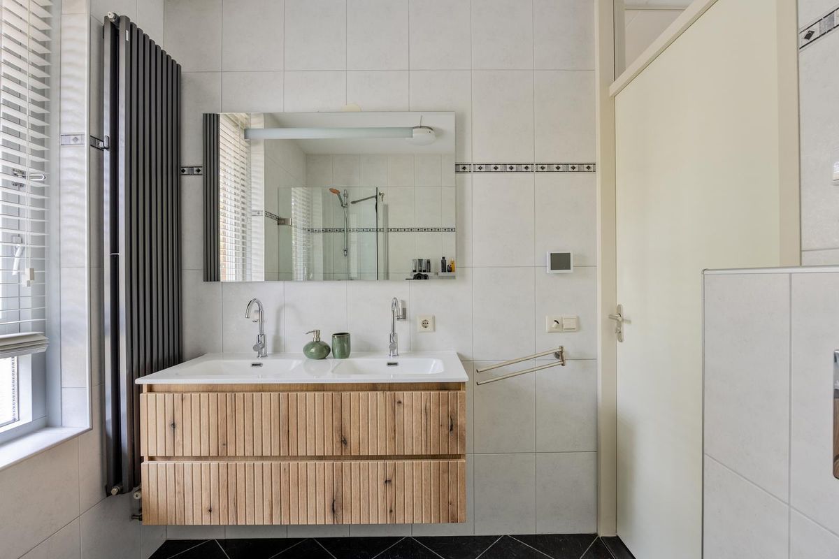 Op de eerste verdieping vind je drie slaapkamers, elk netjes afgewerkt. Eén kamer is nu in gebruik als kastenkamer, maar kan eenvoudig omgetoverd worden tot volwaardige slaapkamer of thuiskantoor. De badkamer is licht en fris, voorzien van een douche, toilet, dubbele wastafel en een raam voor ventilatie en daglicht, hier kom je even helemaal tot rust. Op de tweede verdieping bevindt zich de ruime master bedroom met dakkapel en airconditioning. Hier slaap je koel en comfortabel. Op de overloop staan de wasmachine en droger, met uiteraard de aansluitingen netjes weggewerkt.